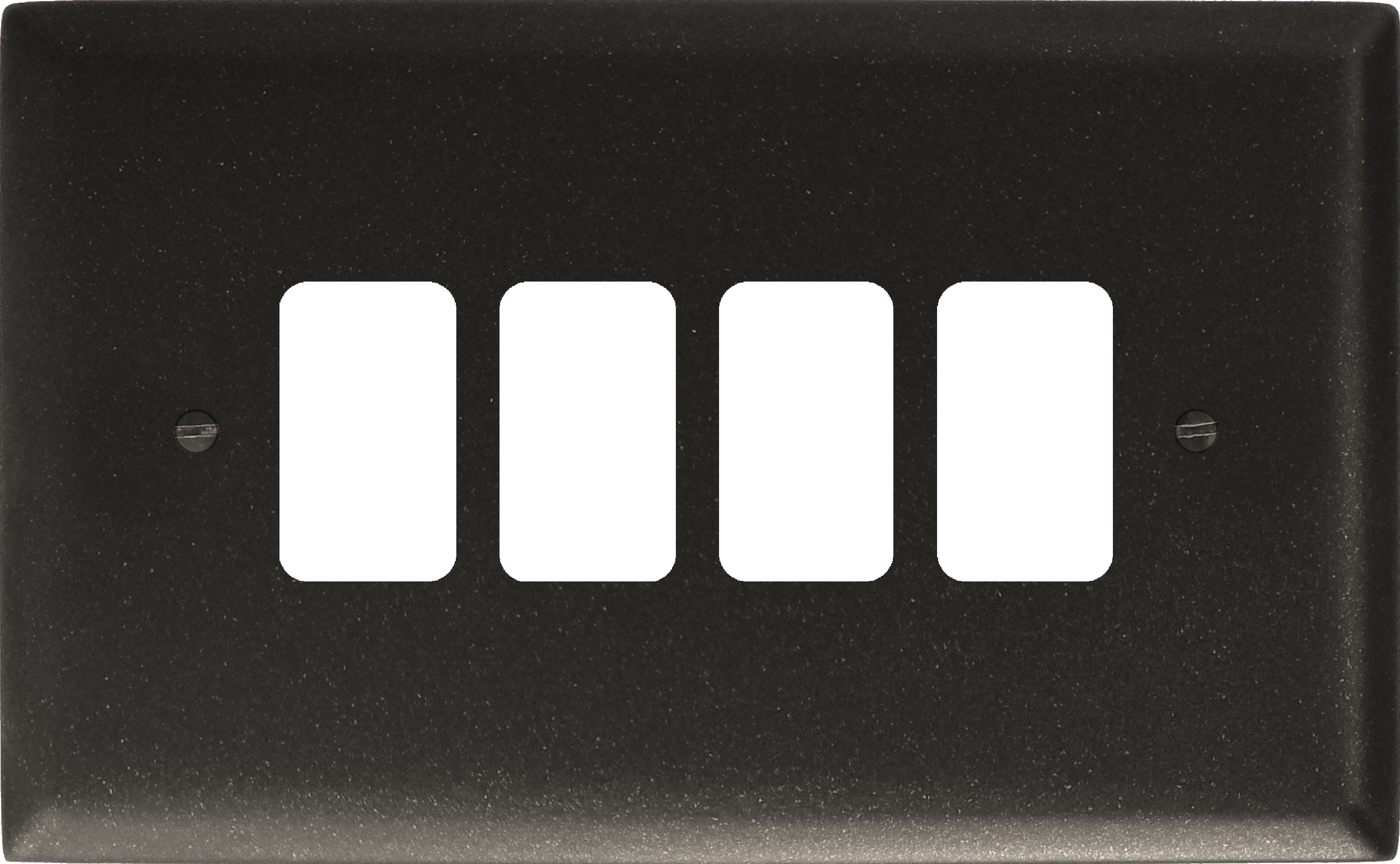 This is the 4 gang graphite grid plate in the spectrum range from G+H Electrical Accessories.