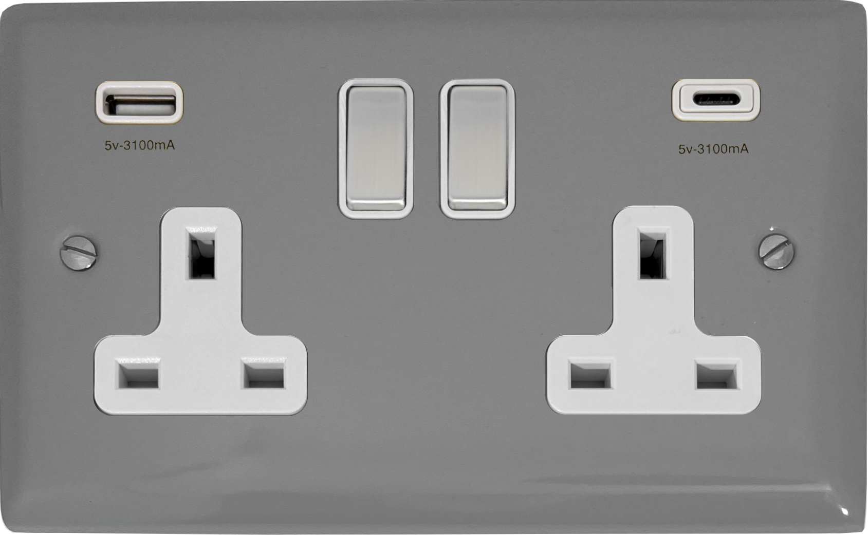 Spectrum Light Grey Double Socket with USB (USB-A and USB-C/White Insert/Metal Switches) EL.2911.LG