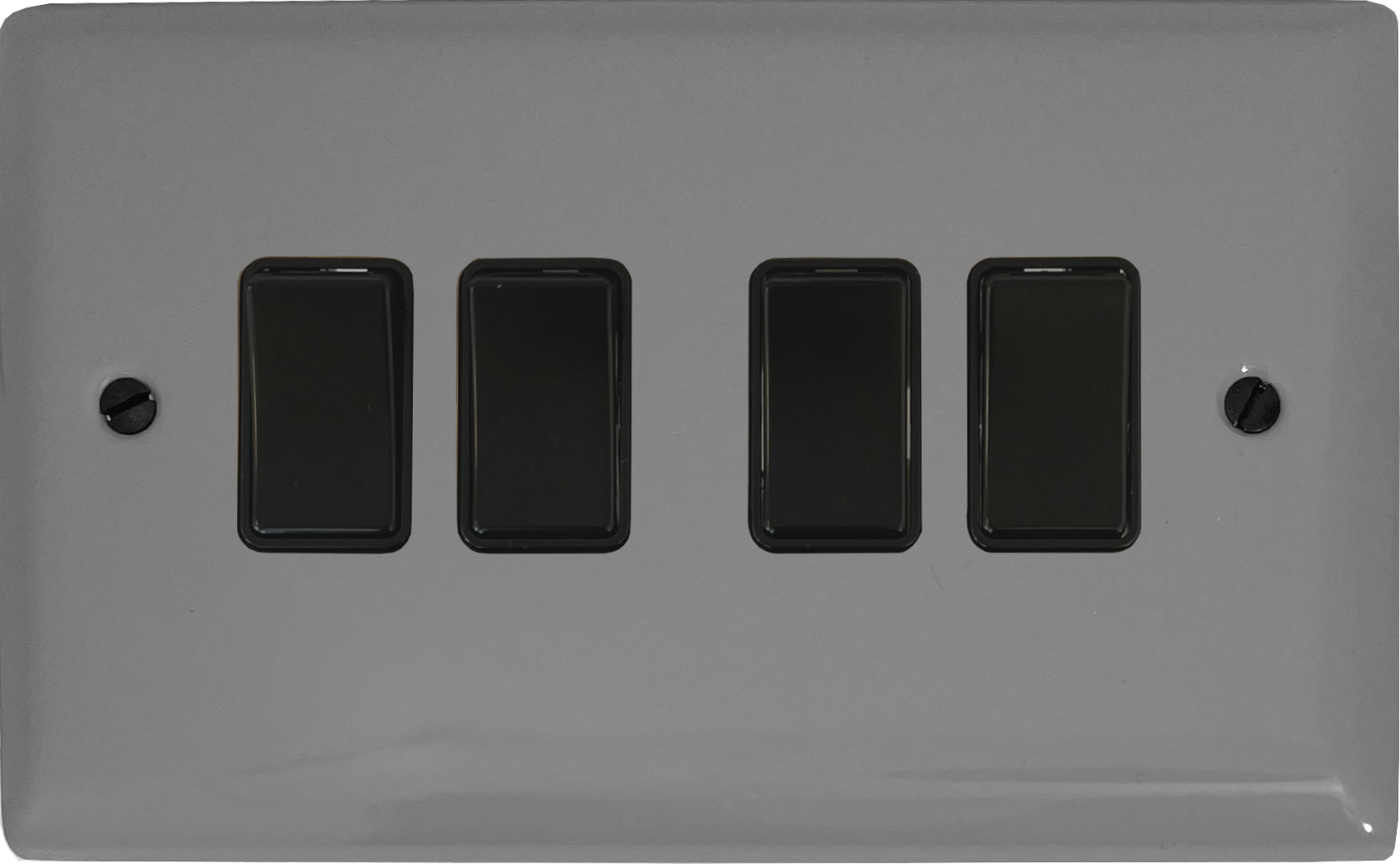 Spectrum Light Grey Light Switch (4 Gang/Black Switches) EL.4B.LG