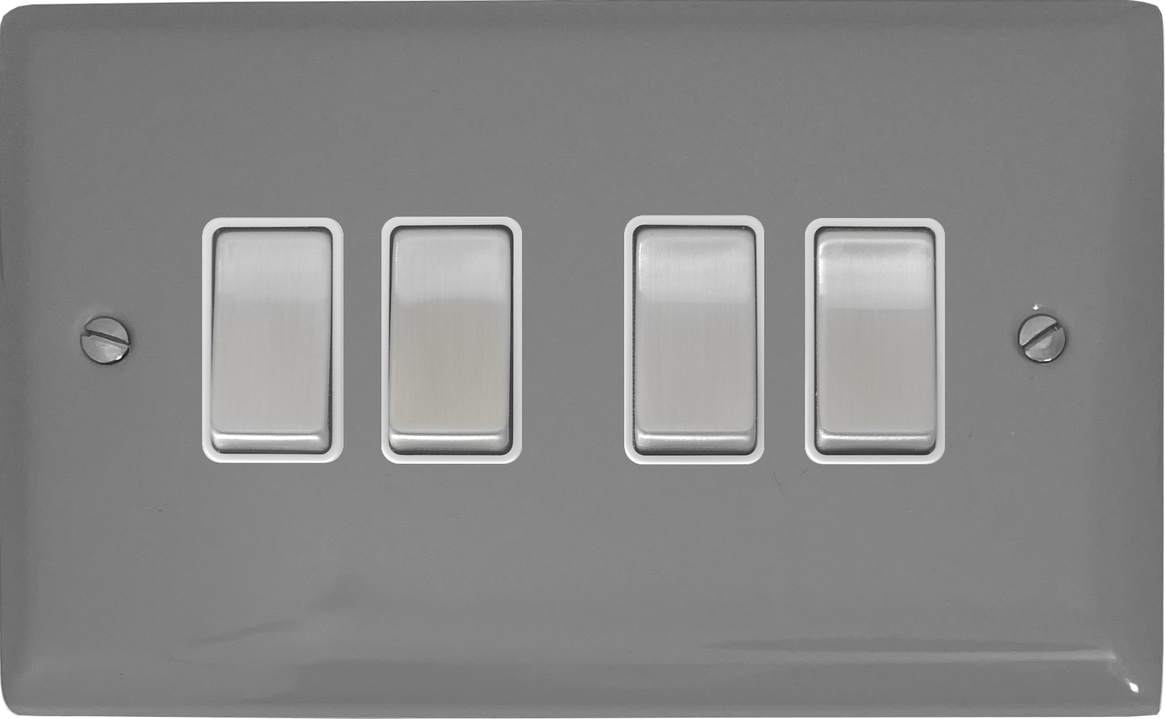 Spectrum Light Grey Light Switch (4 Gang/White insert/ Metal Switches) EL.204.LG