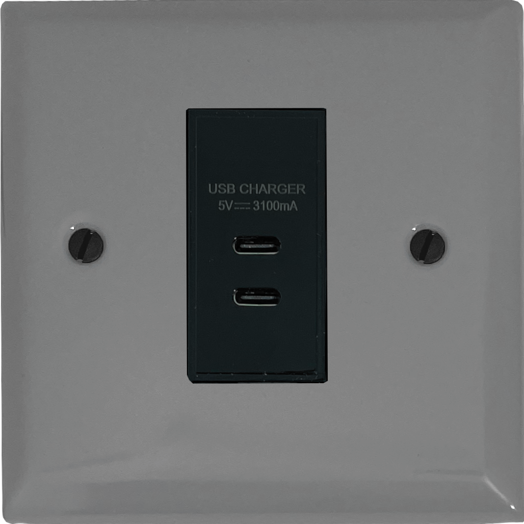 Spectrum Light Grey USB Charger (2x USB-C) (Black Insert/1 Gang) EL.42B.LG