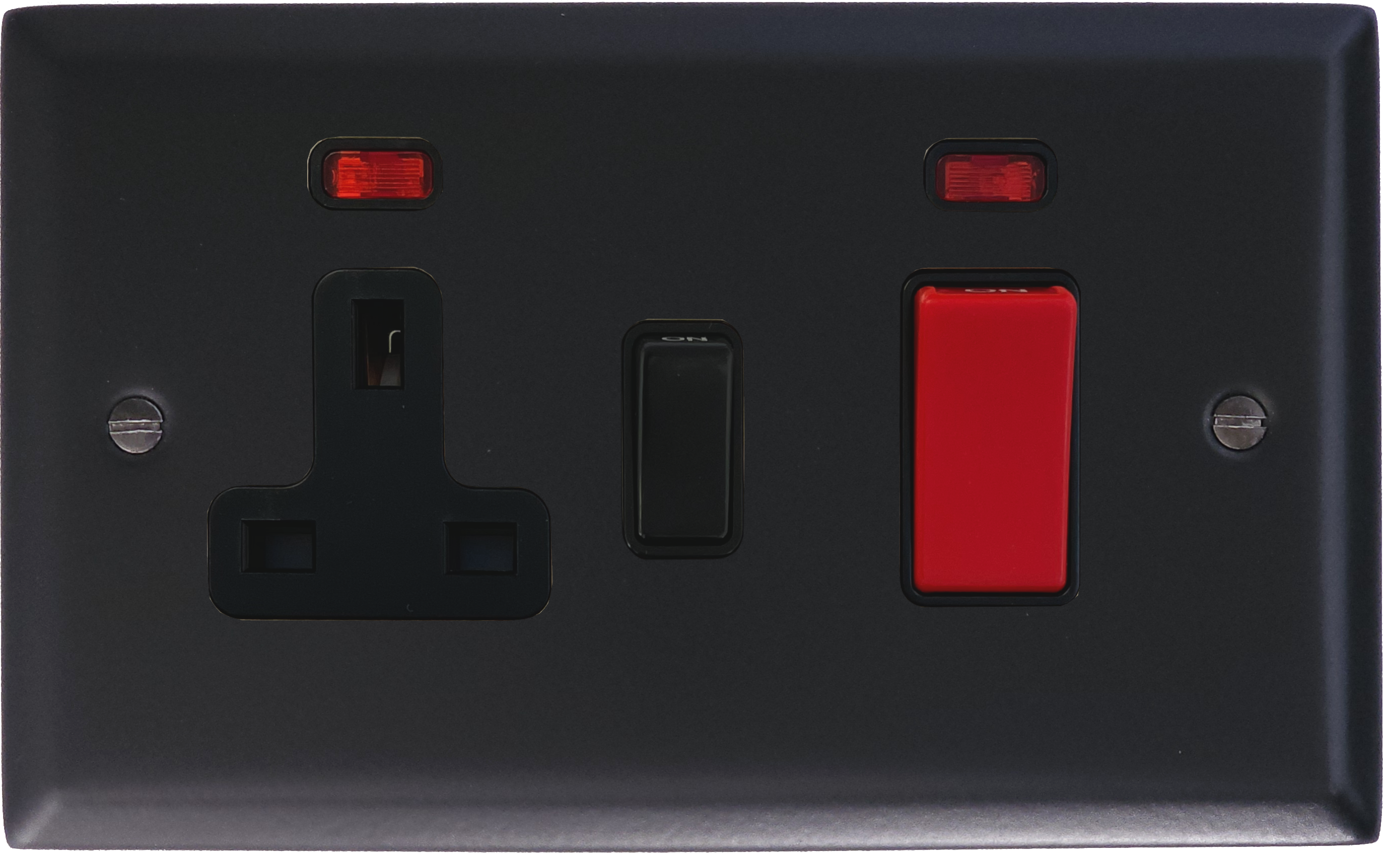 Spectrum Matt Black Cooker Switch with Socket EL.29B.FB