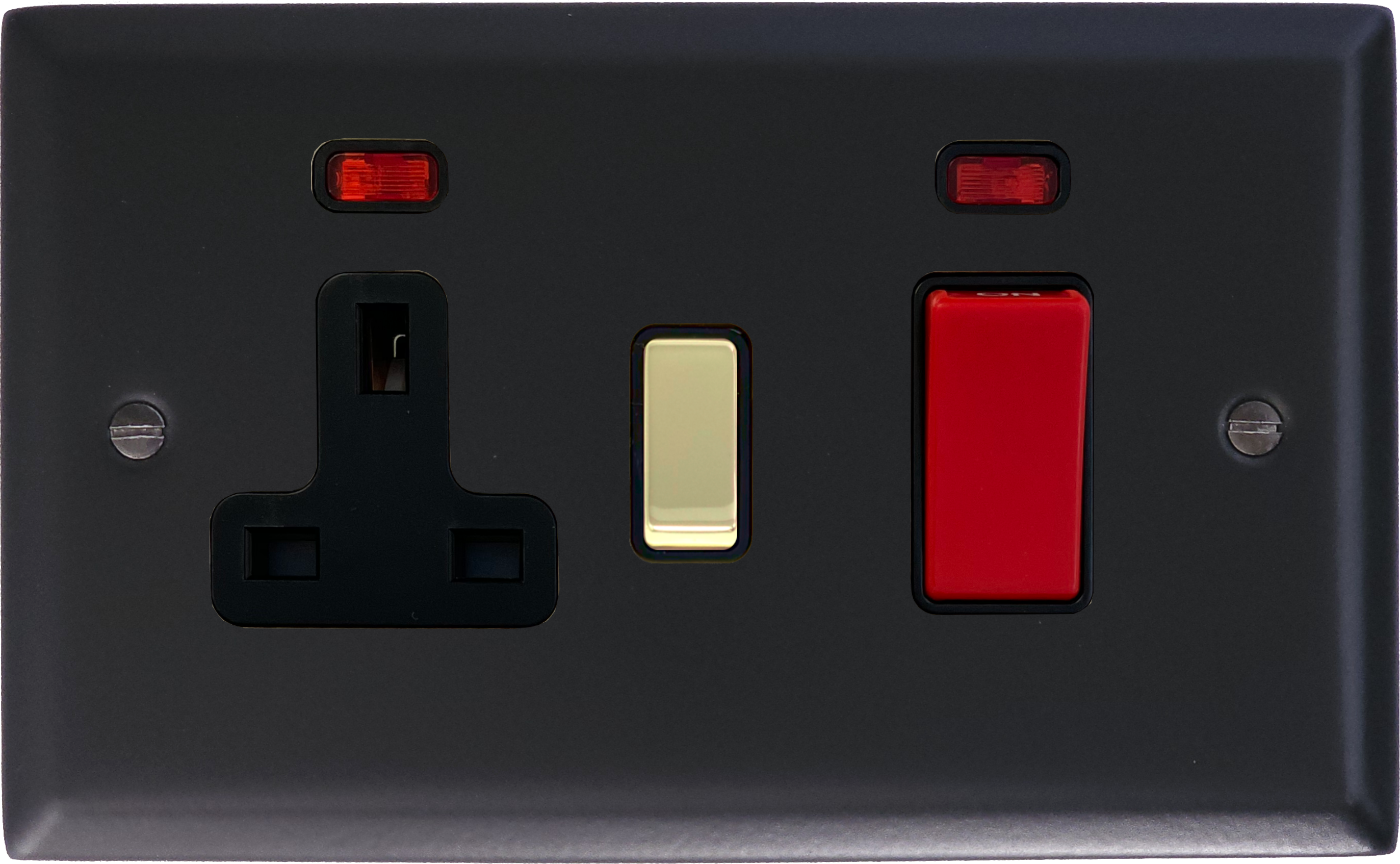 Spectrum Matt Black Cooker Switch with Socket (Polished Brass Switch) EL.329PB.FB