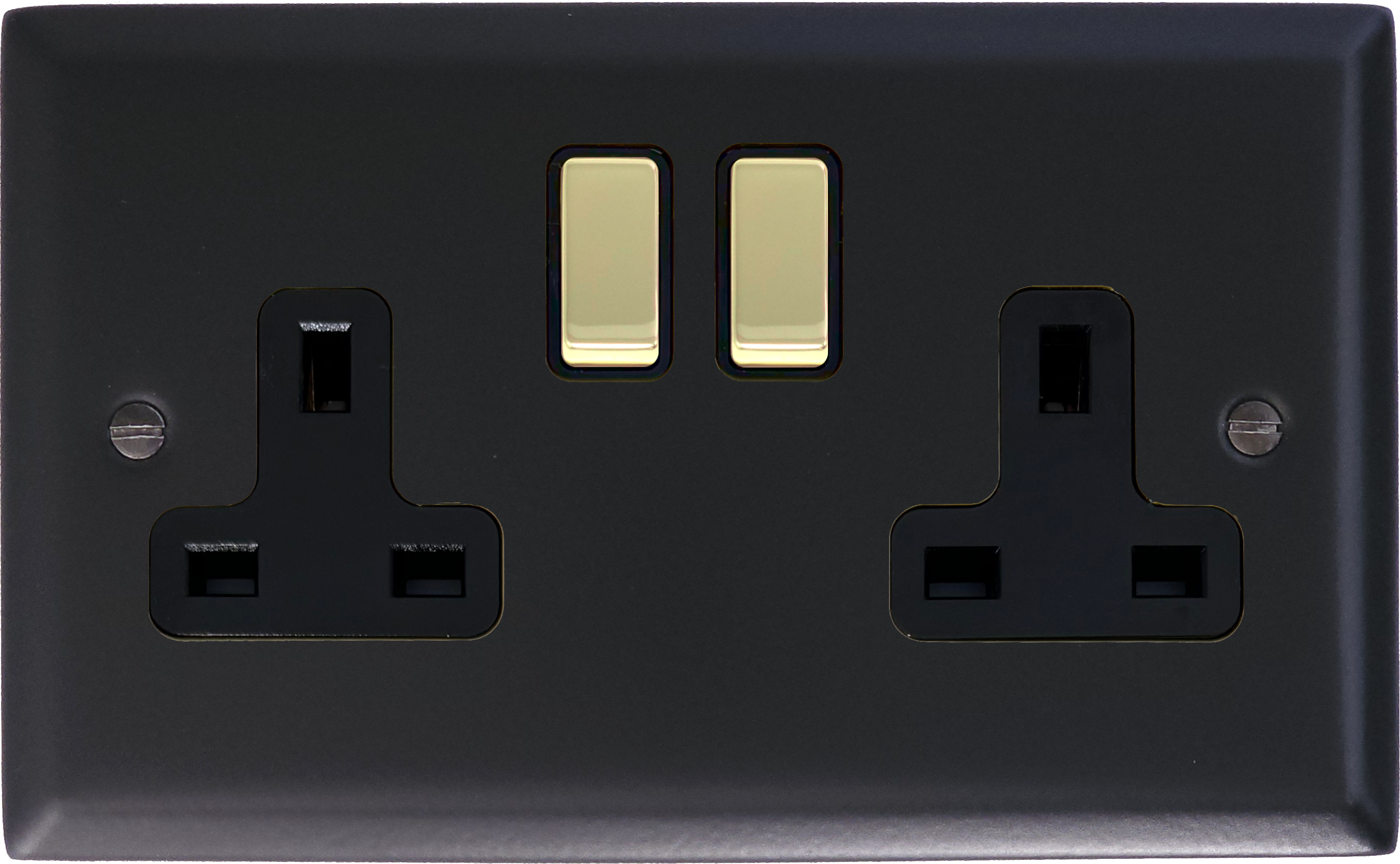 Spectrum Matt Black Double Socket (Polished Brass Switches) EL.310PB.FB