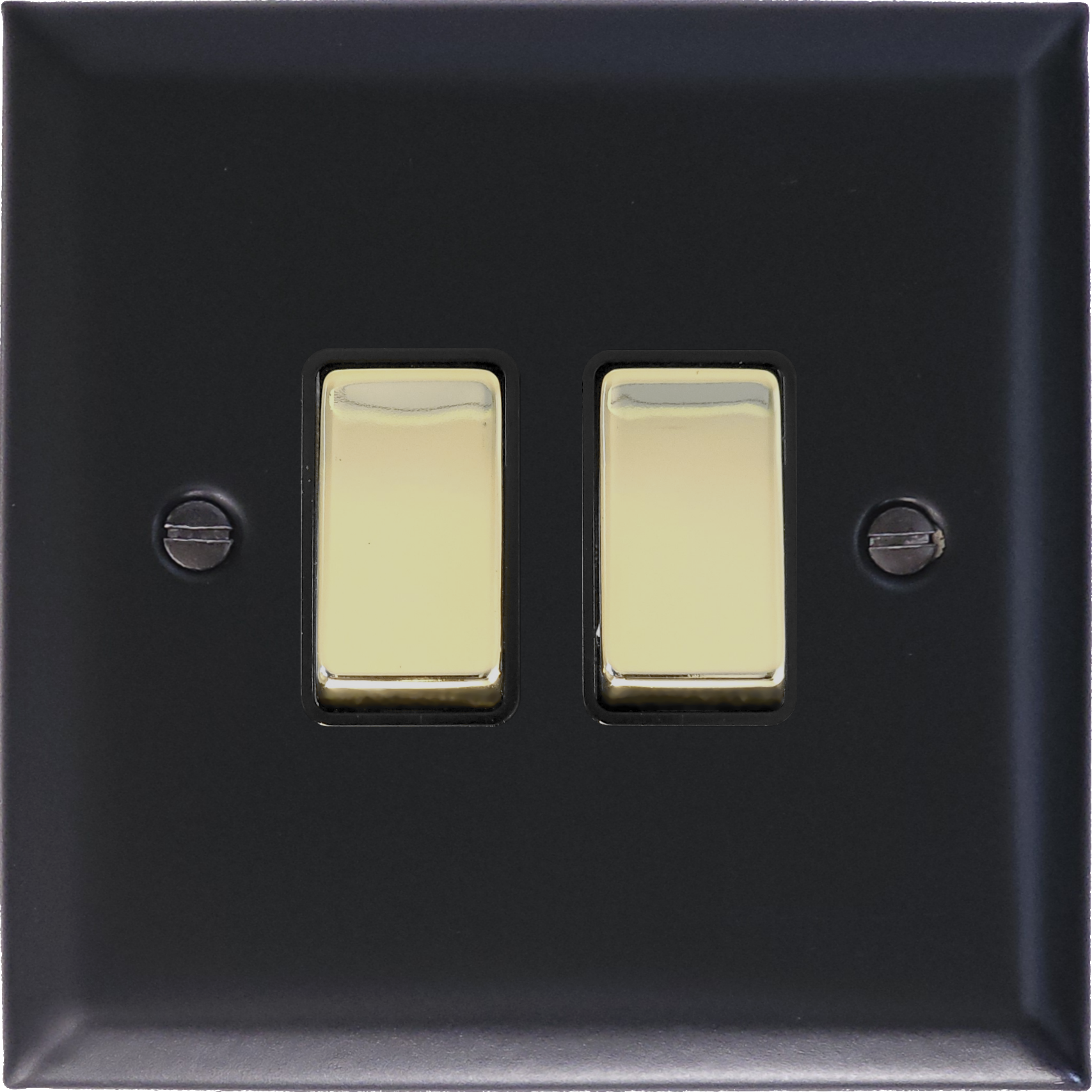 Spectrum Matt Black Light Switch (2 Gang/Polished Brass Switches) EL.302PB.FB