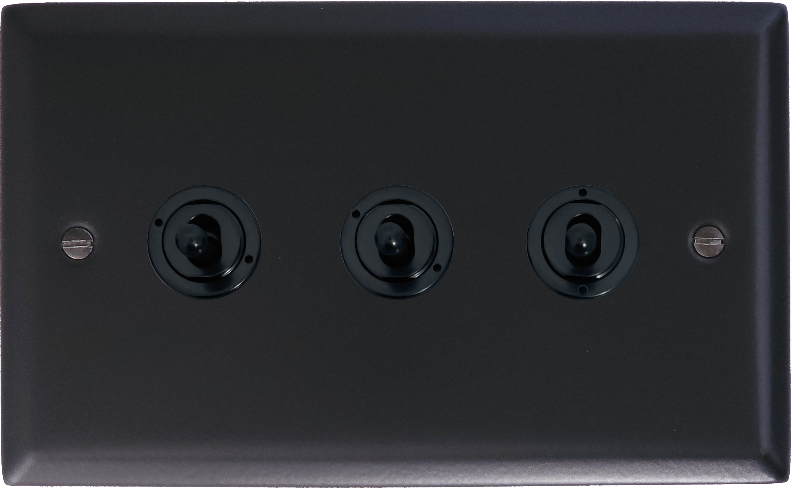 Spectrum Matt Black Toggle Switch (3 Gang/Flat Black Toggle) EL.383FBK.FB
