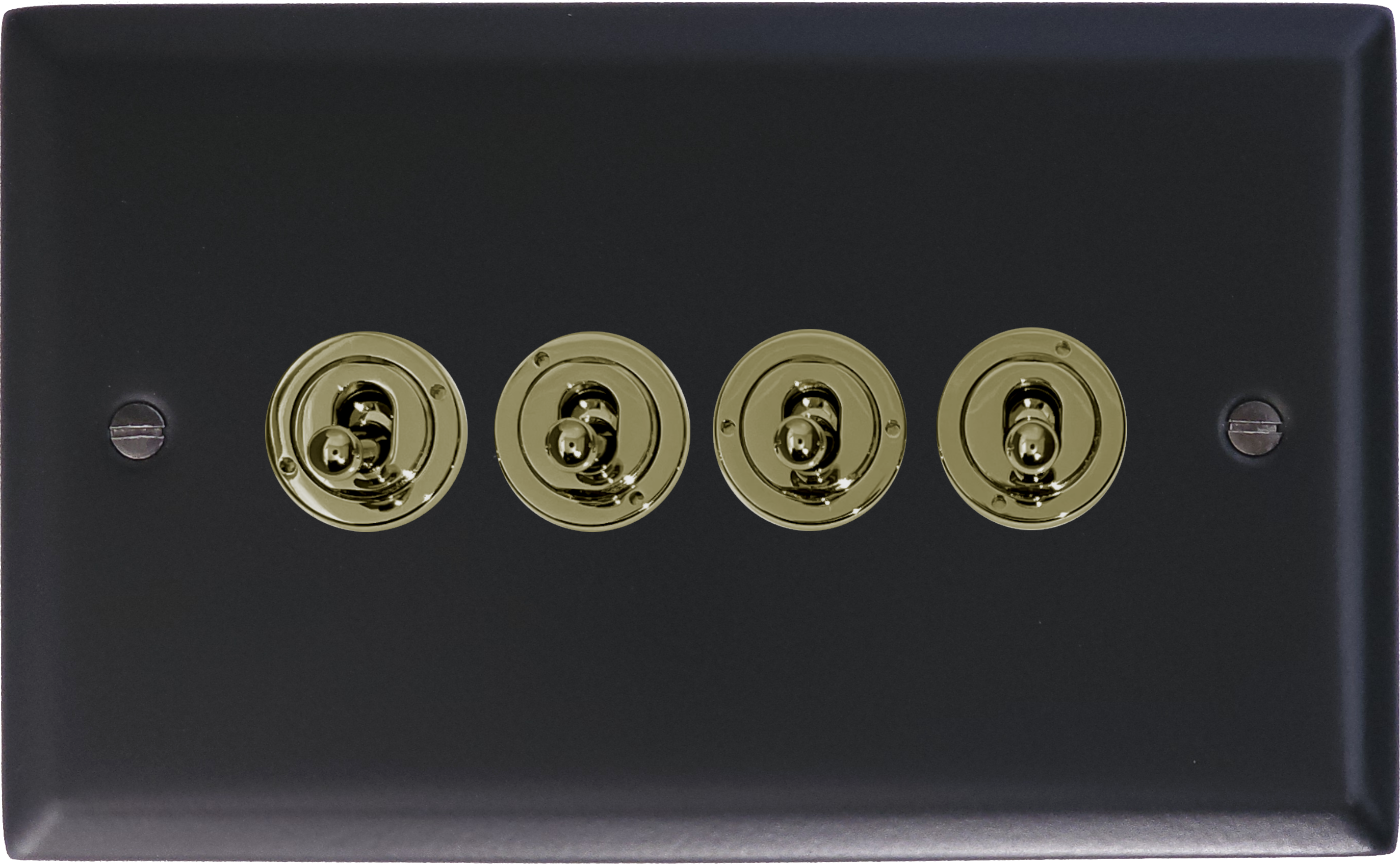 Spectrum Matt Black Toggle Switch (4 GangPolished Brass Toggles) EL.384PB.FB