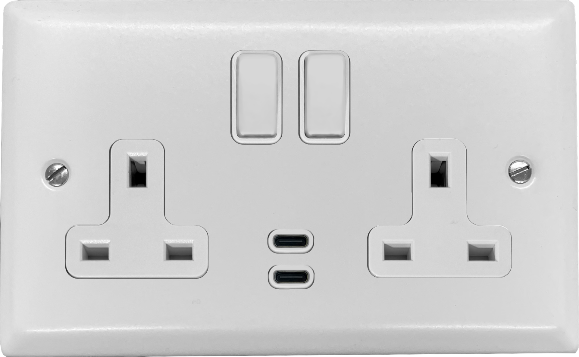 Spectrum White Double Socket with USB (USB-C/White Switches) - SFW913W