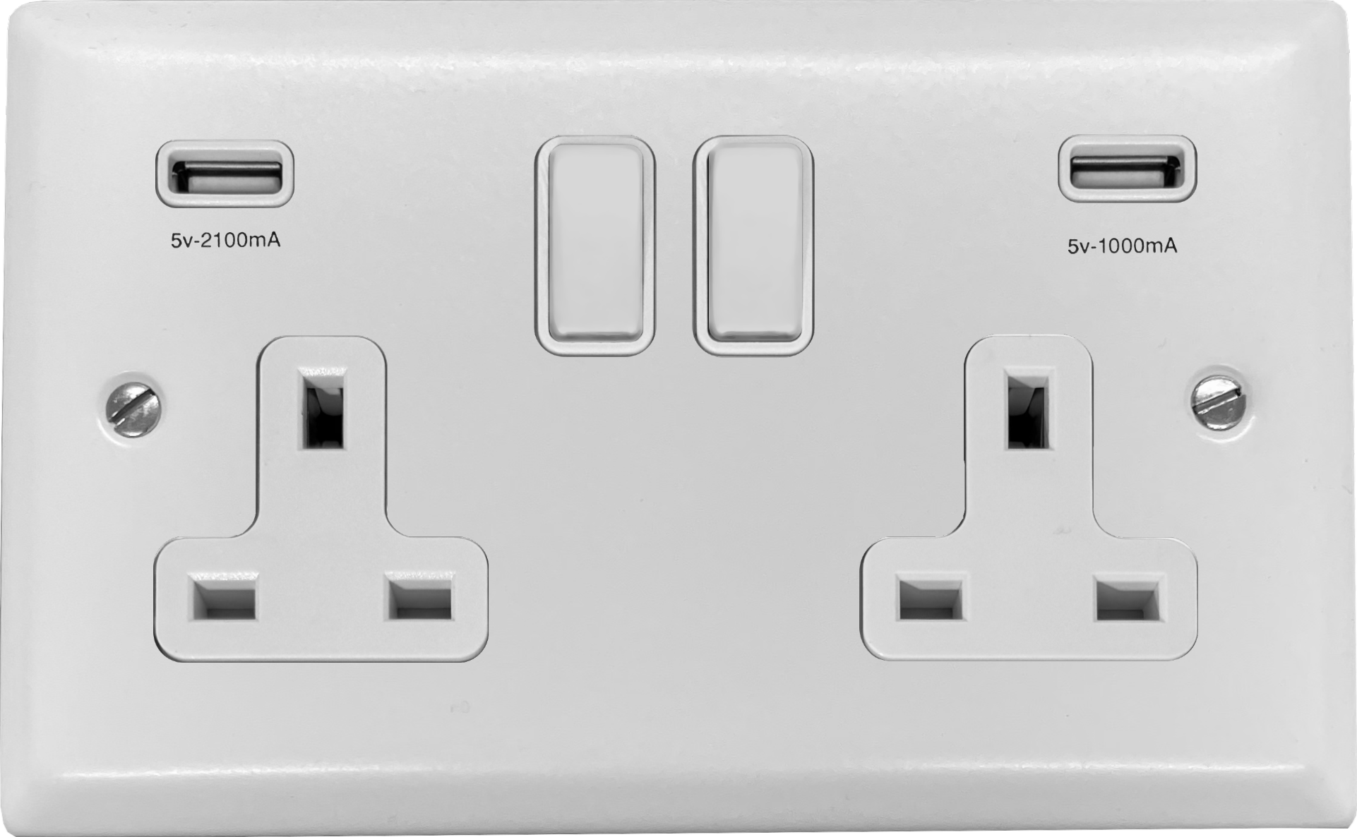 Spectrum White Double Socket with USB (White Switches) - SFW910W