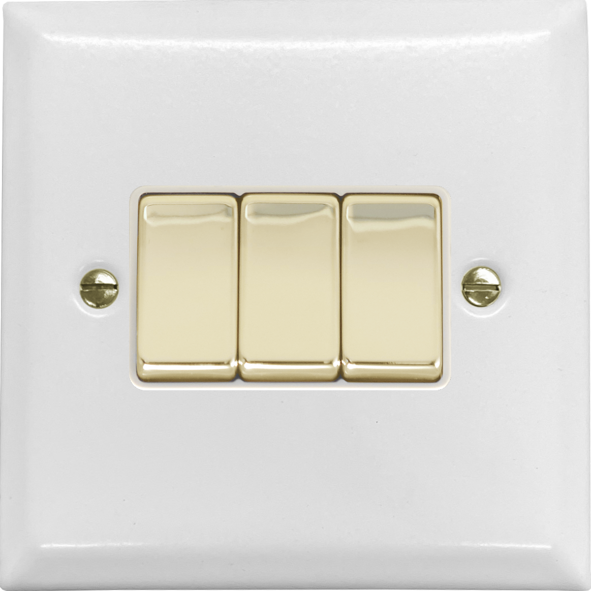 Spectrum White Light Switch (3 Gang/White Insert/Polished Brass Switches) - SFW203-PB