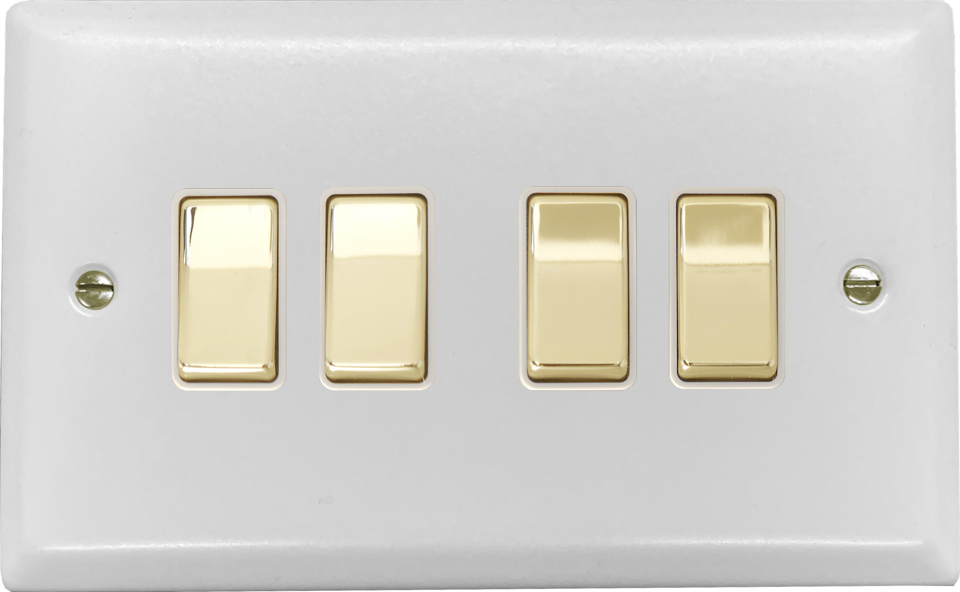 Spectrum White Light Switch (4 Gang/White insert/ Polished Brass Switches) - SFW204-PB