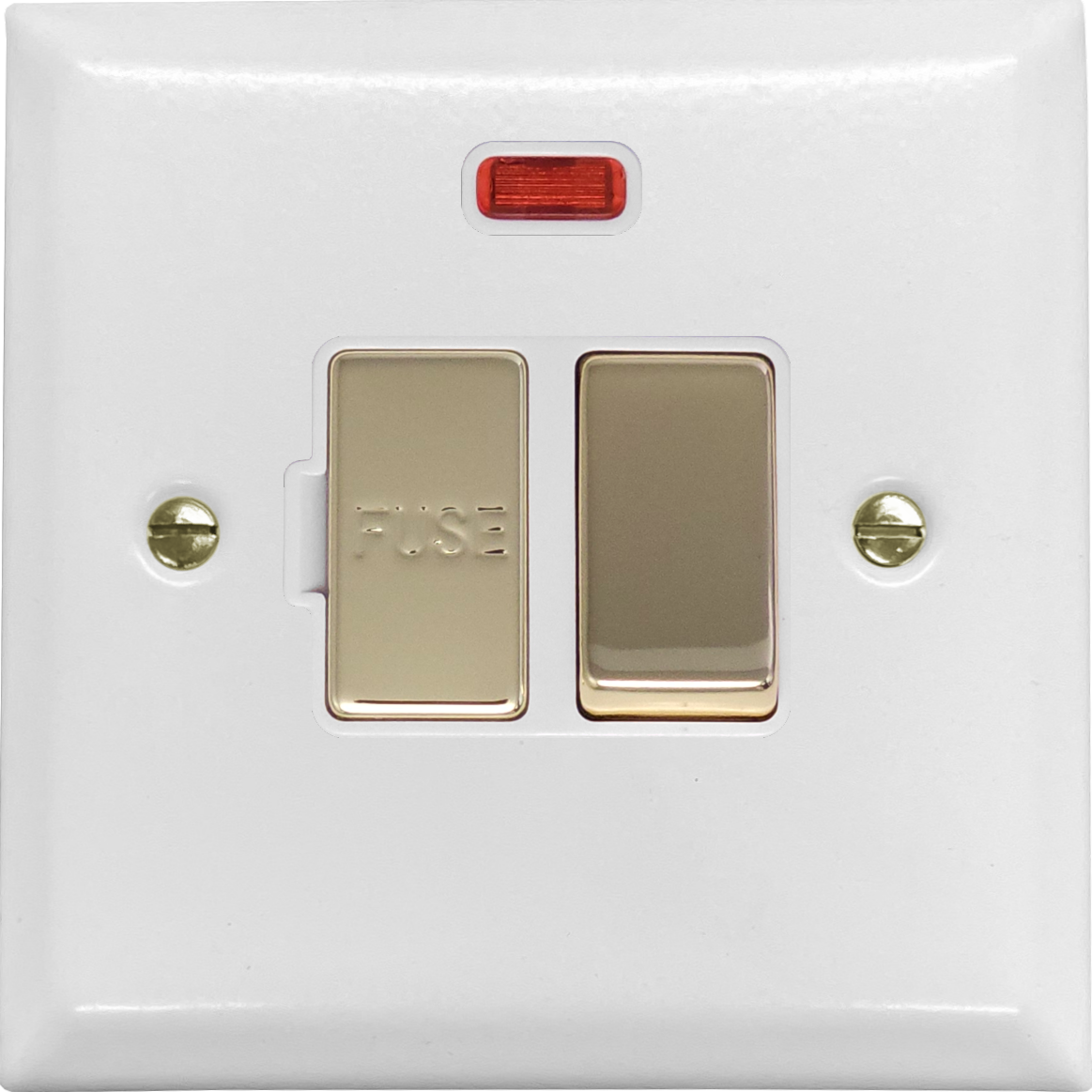 Spectrum White Switched Fused Spur with Neon (White insert/Polished Brass Switch) - SFW227-PB