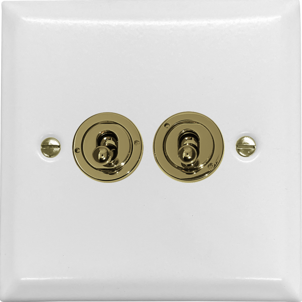 Spectrum White Toggle Switch (2 Gang/Polished Brass Switches) - SFW382-PB