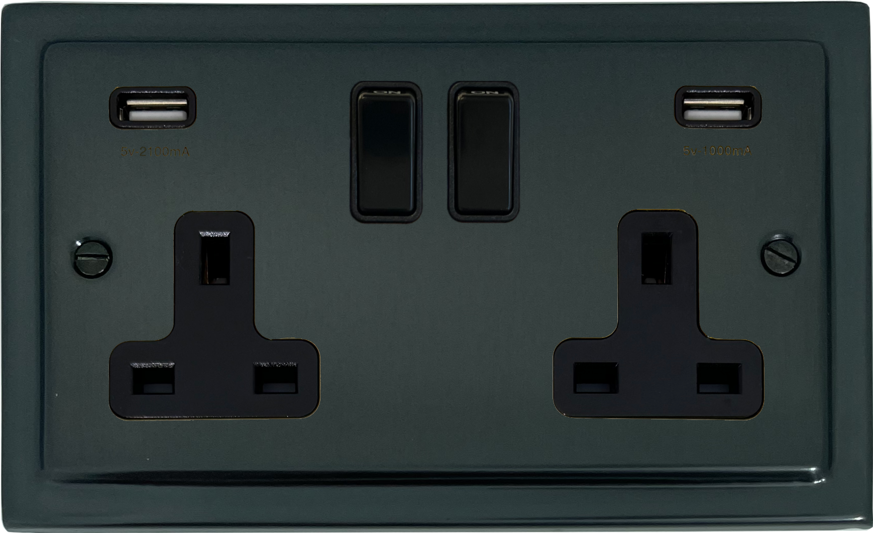 Trimline Black Bronze Double Socket with USB - TBB910B