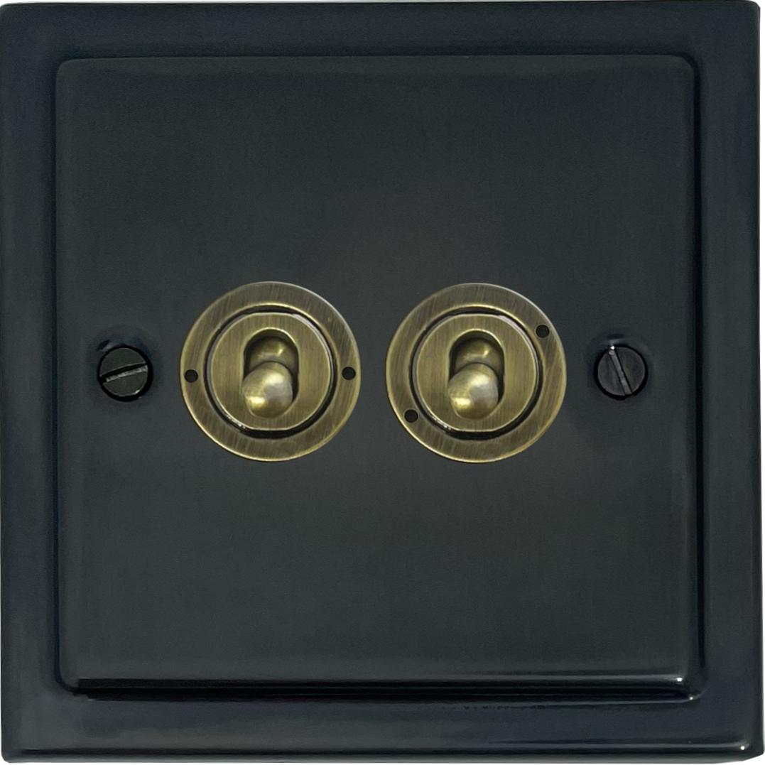 Trimline Black Bronze Toggle Switch (2 Gang/Antique Brass Toggle) VI.382AB.BB