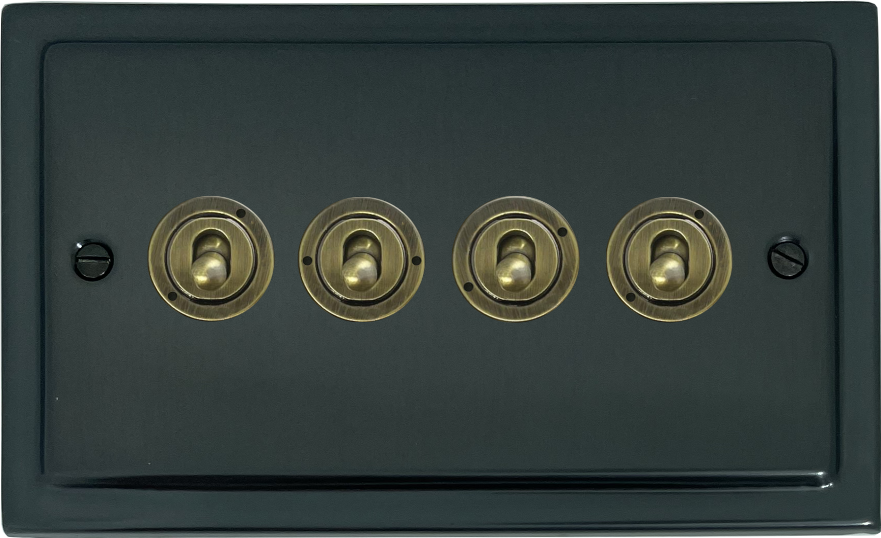 Trimline Black Bronze Toggle Switch (4 Gang/Antique Brass Toggle) - TBB384-AB