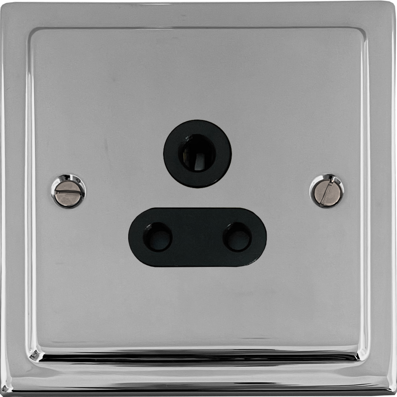 Victorian Polished Chrome 5A 3 Pin Socket (Black Insert) - TC59B