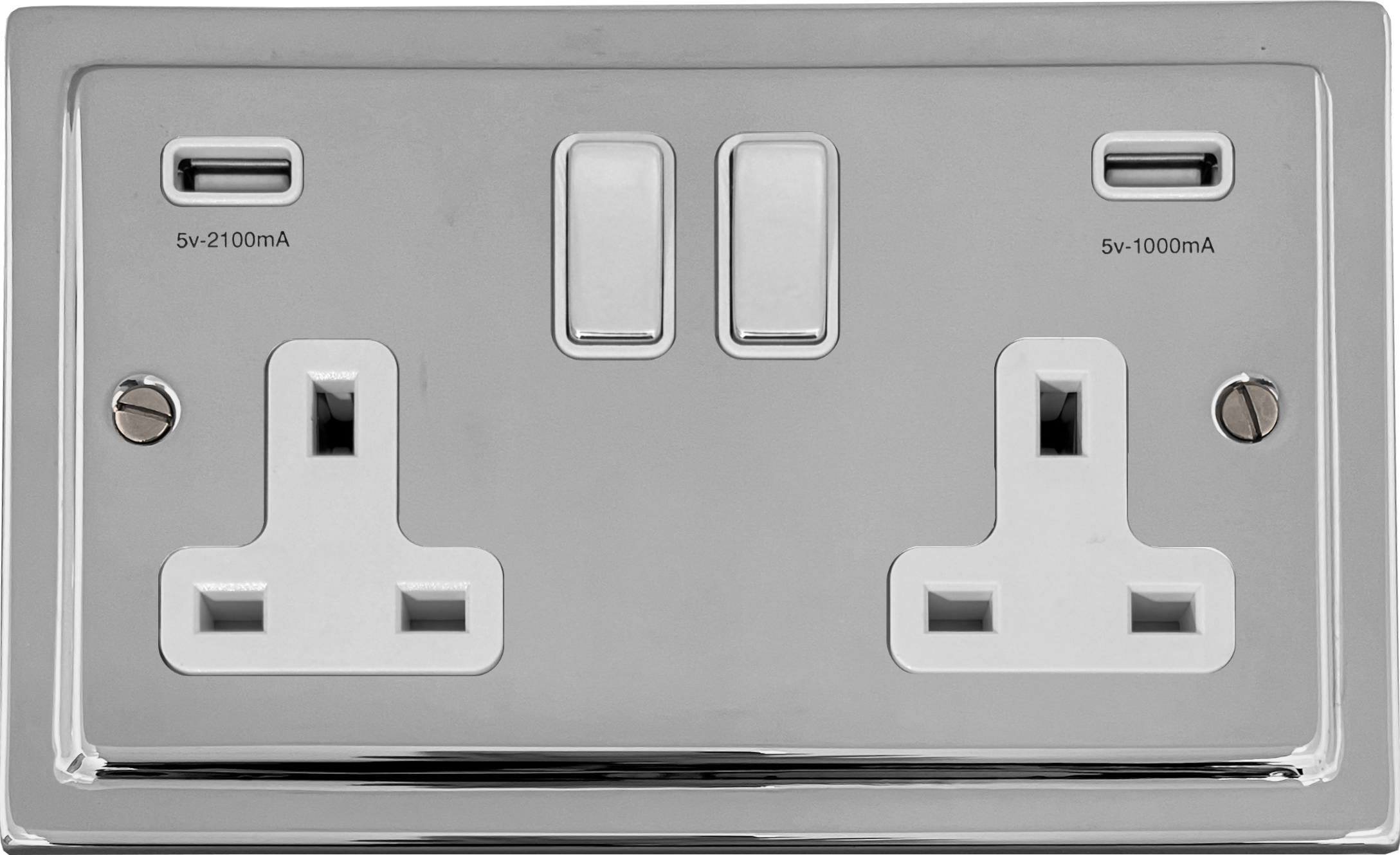 Victorian Polished Chrome Double Socket with USB (Chrome Switch/White Inserts) VI.2910.C
