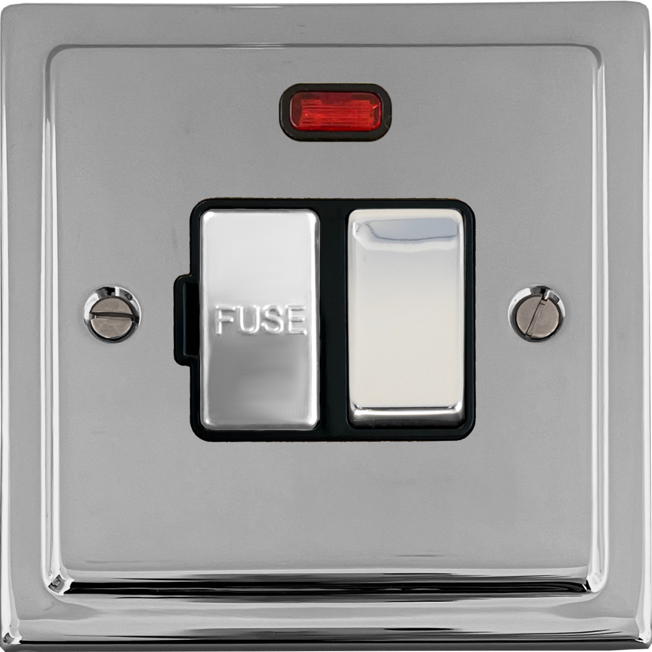 Victorian Polished Chrome Switched Fused Spur with Neon (Black Insert/Polished Chrome Switch) VI.327.C