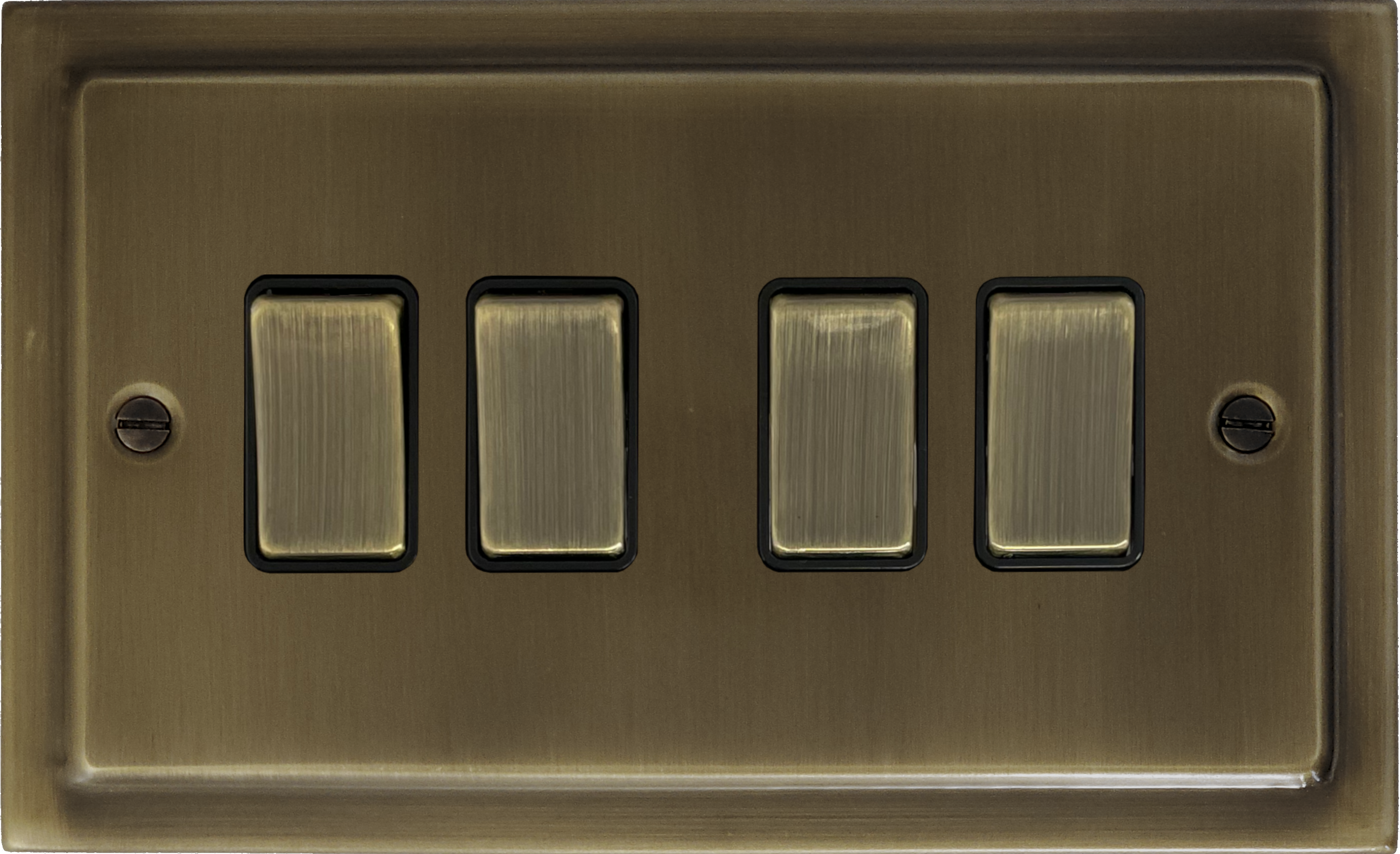This is a four gang Victorian antique brass light switch from G+H Electrical Accessories.