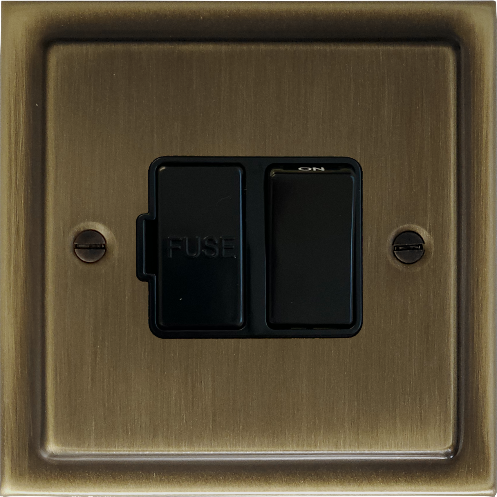 Victorian Antique Brass Switched Fused Spur (Black Switch) VI.57B.AB