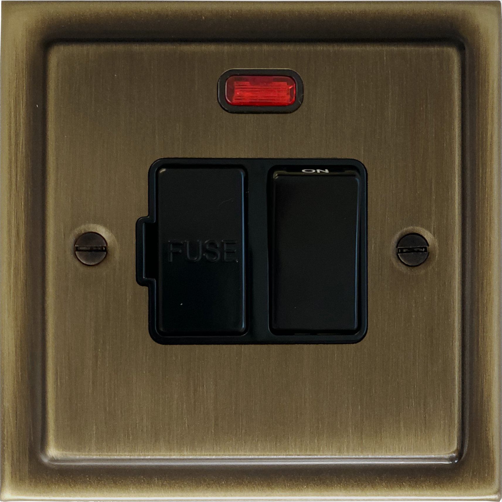 Victorian Antique Brass Switched Fused Spur with Neon (Black Switch) VI.27B.AB