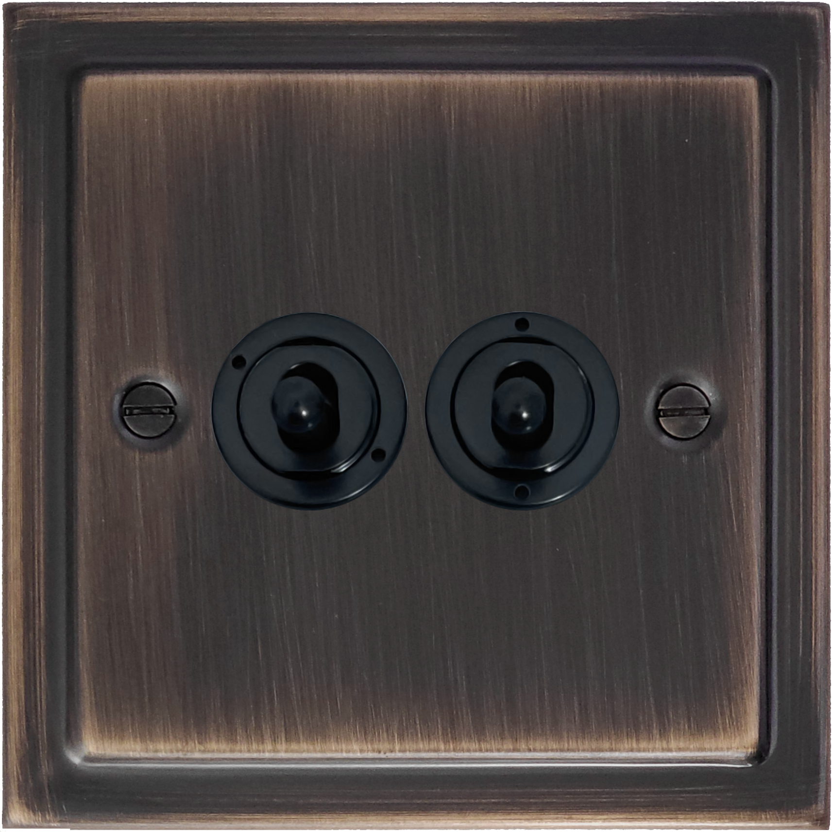 Victorian Antique Copper Toggle Switch (2 Gang/Flat Black Toggle) VI.382FBK.AC