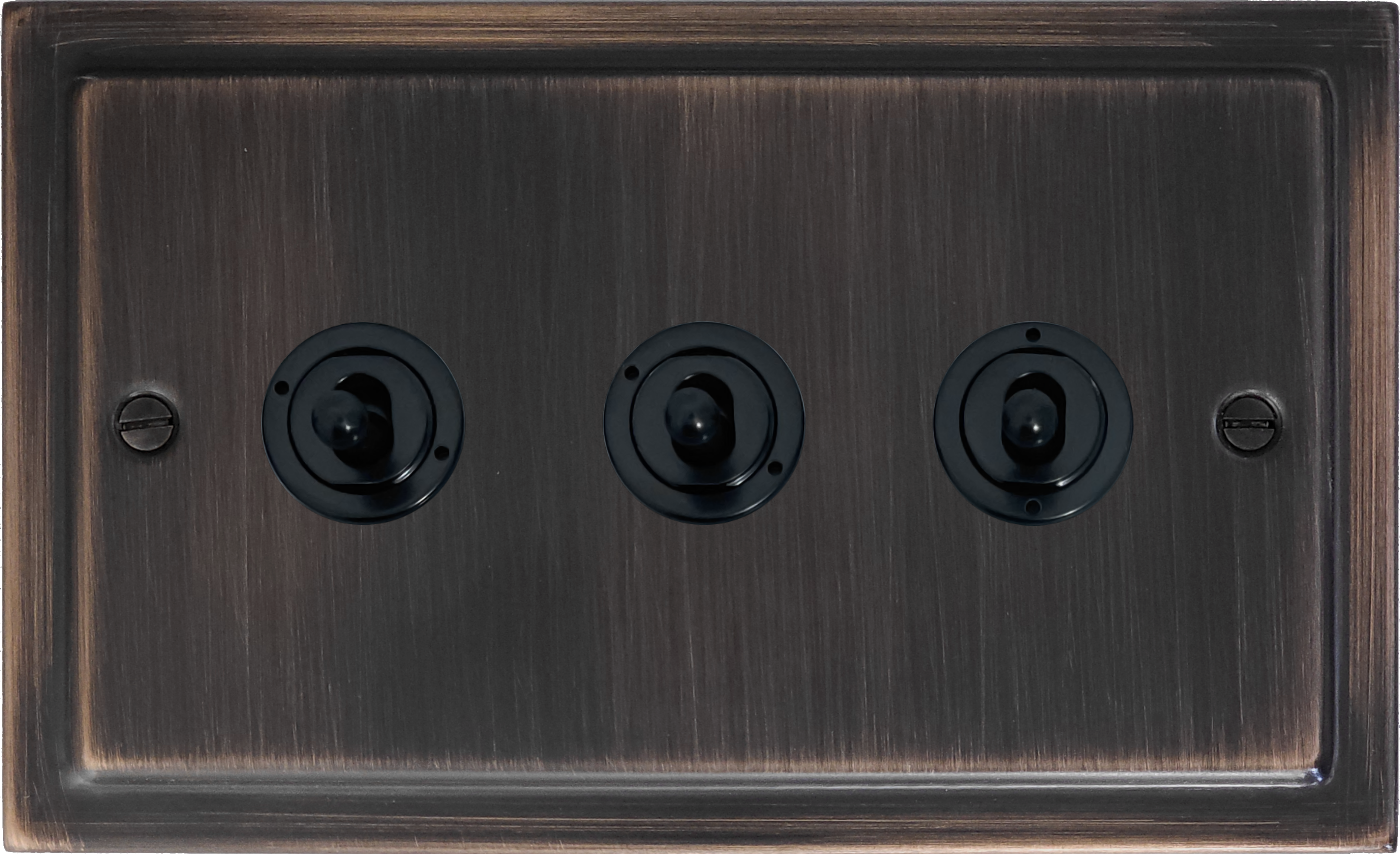 Victorian Antique Copper Toggle Switch (3 Gang/Flat Black Toggle) VI.383FBK.AC