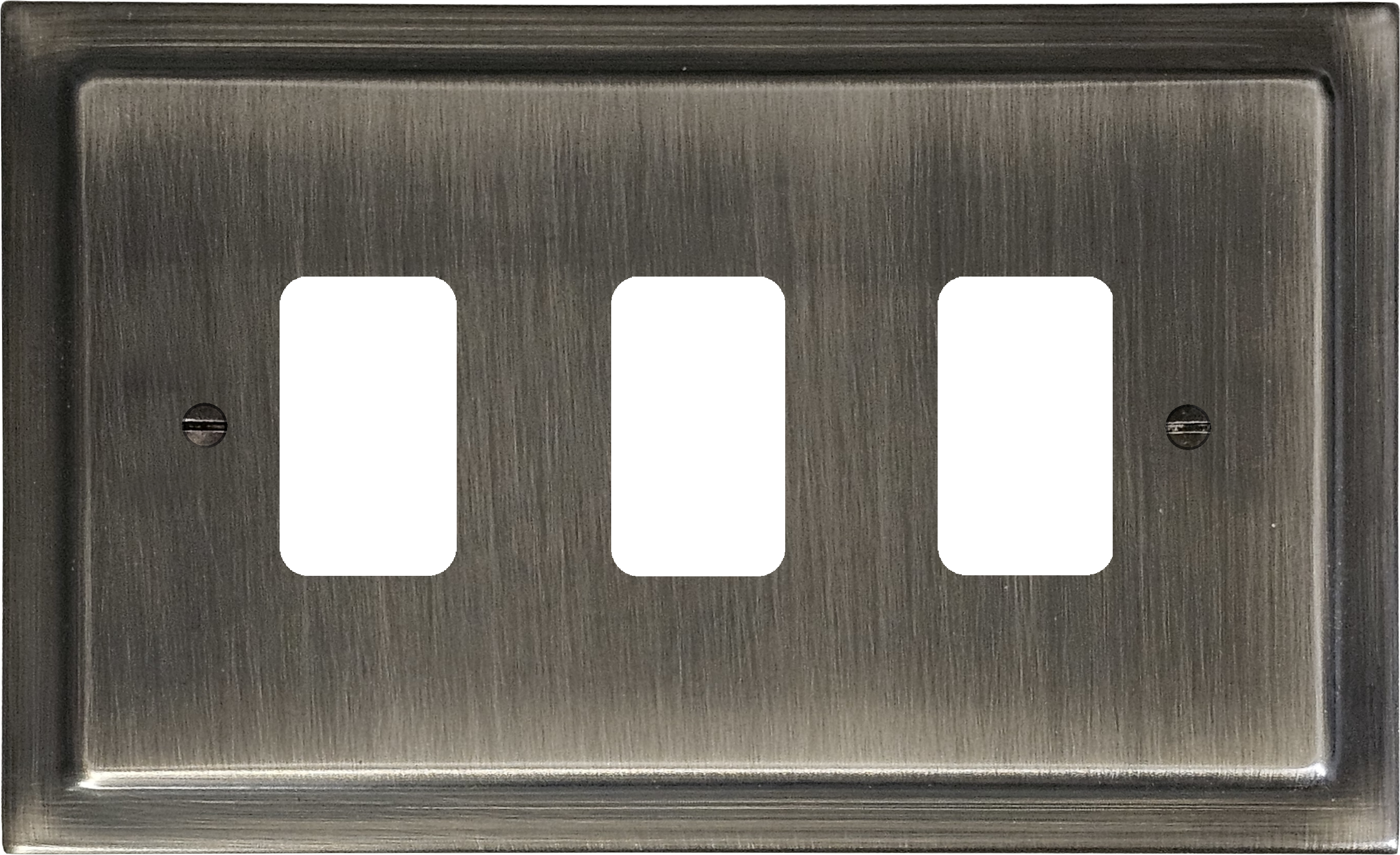 Victorian Antique Nickel Grid Plate (3 Gang) VI.73.NA