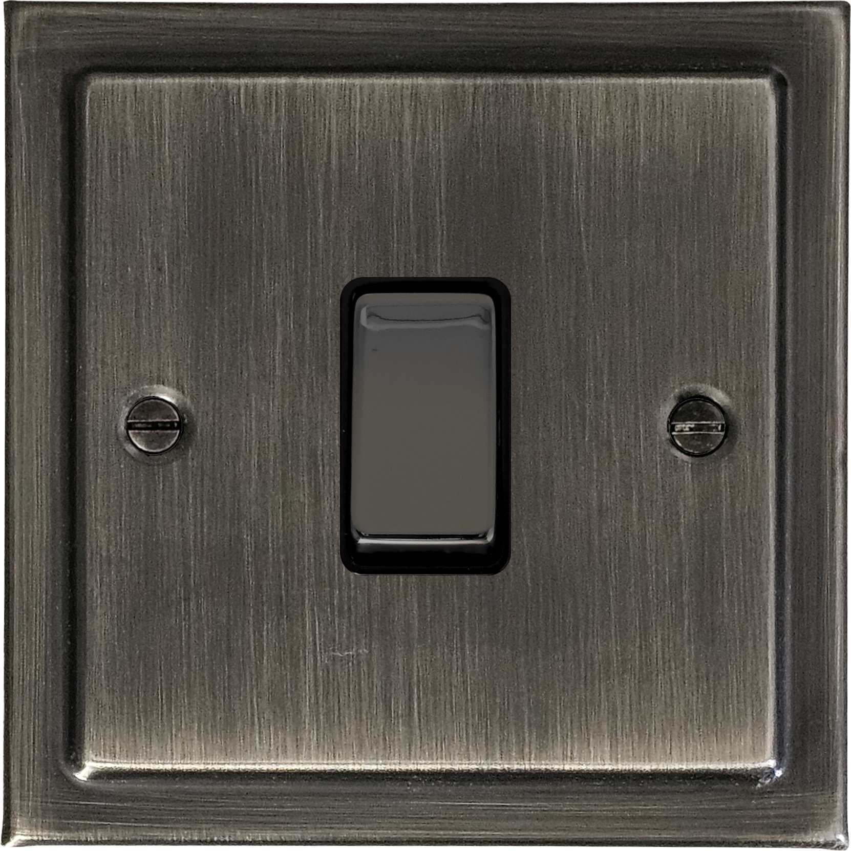 Victorian Antique Nickel Intermediate Light Switch (1 Gang/Black insert/Black Nickel Switch) VI.305.NA