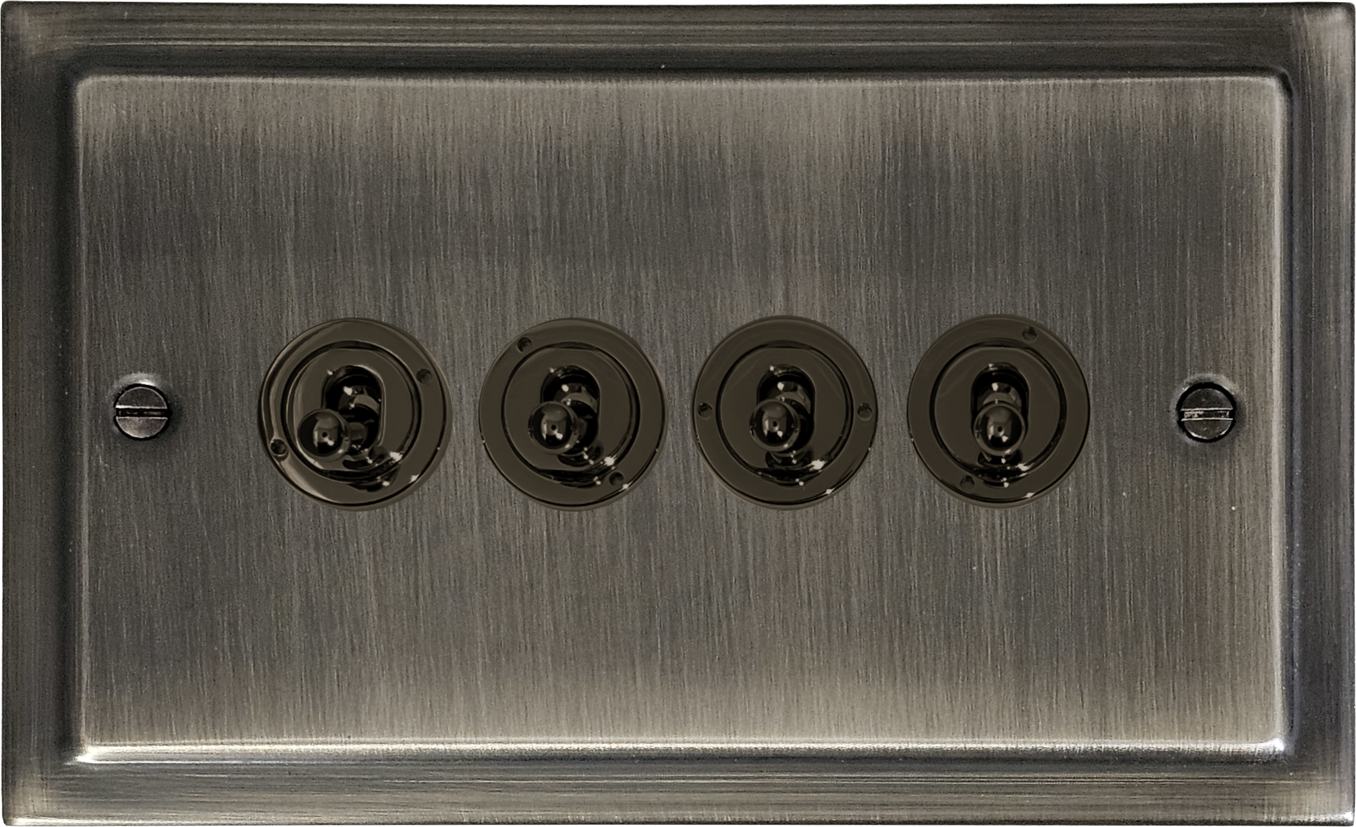 Victorian Antique Nickel Toggle Switch (4 Gang/Black Nickel Toggle) VI.384BN.NA