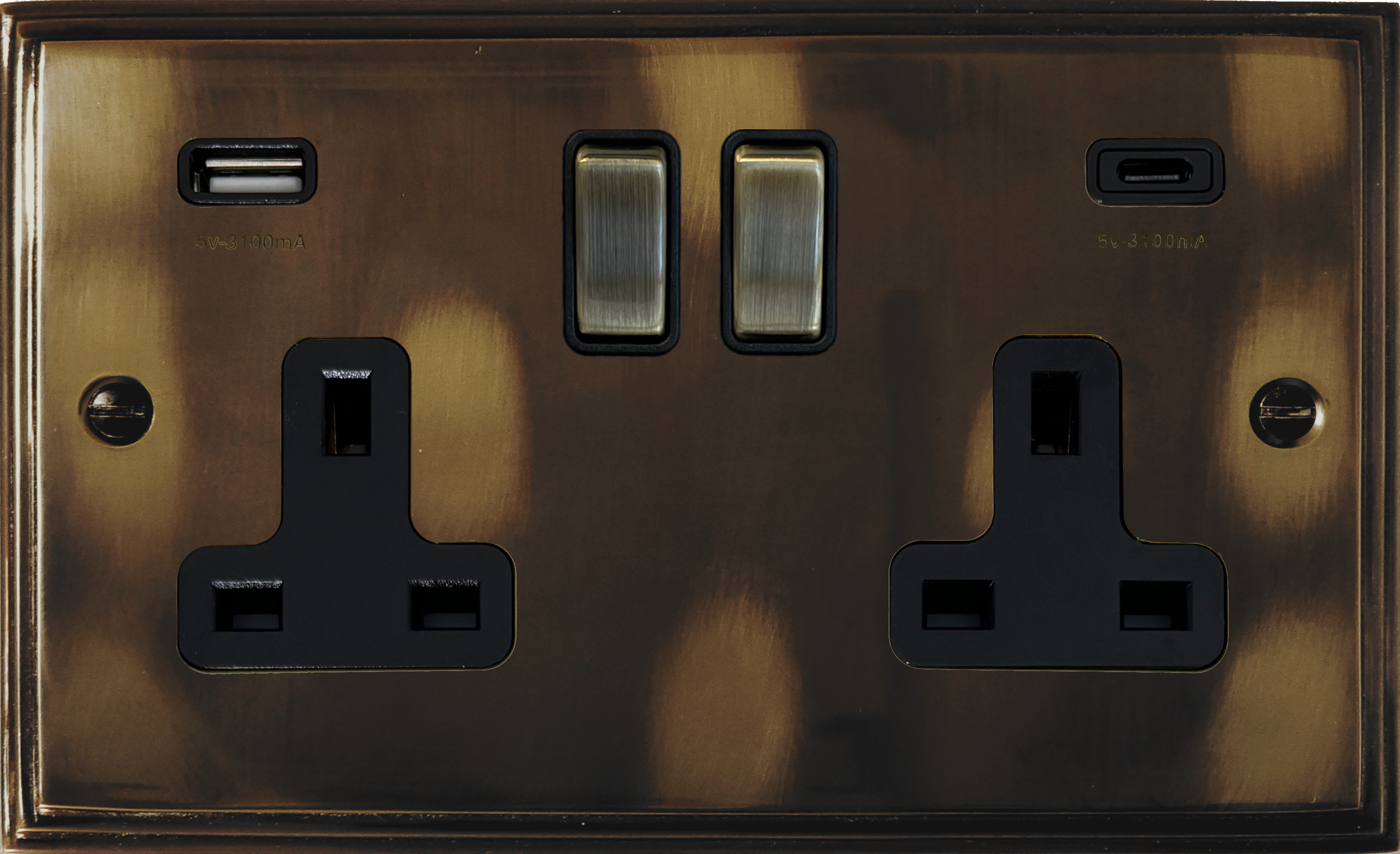 Victorian Cast Aged Brass Double Socket (2 Gang/USB-A and USB-C) VC.3911.AN