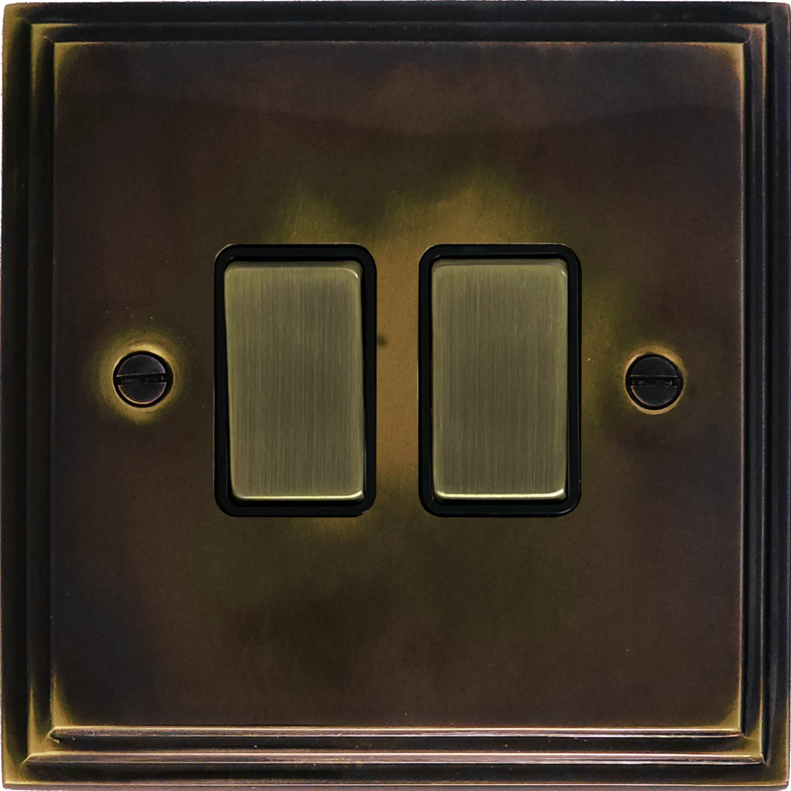 Victorian Cast Aged Brass Light Switch (2 Gang) VC.302.AN