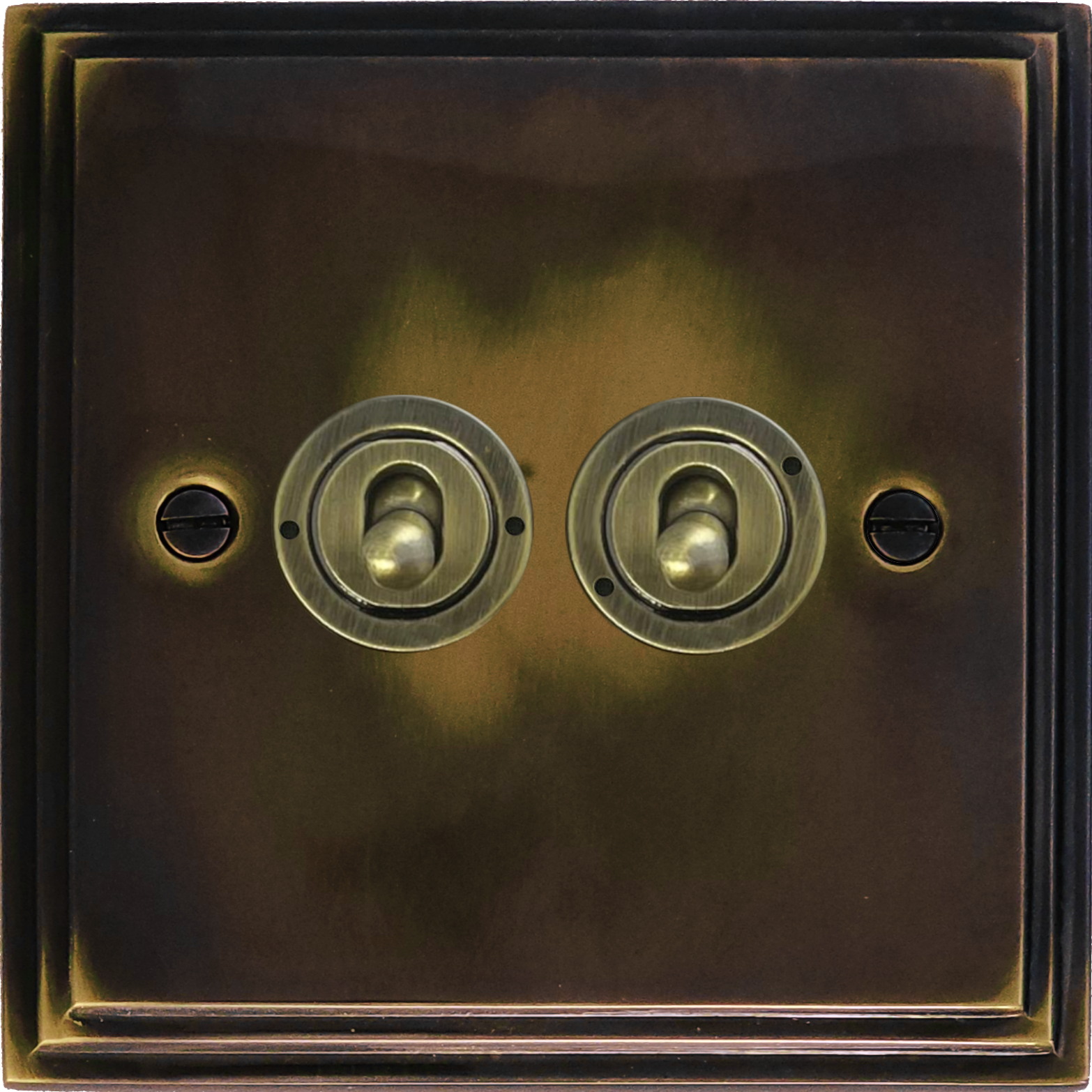 Victorian Cast Aged Brass Toggle Plate (2 Gang/Antique Brass Toggle) VC.382.AN