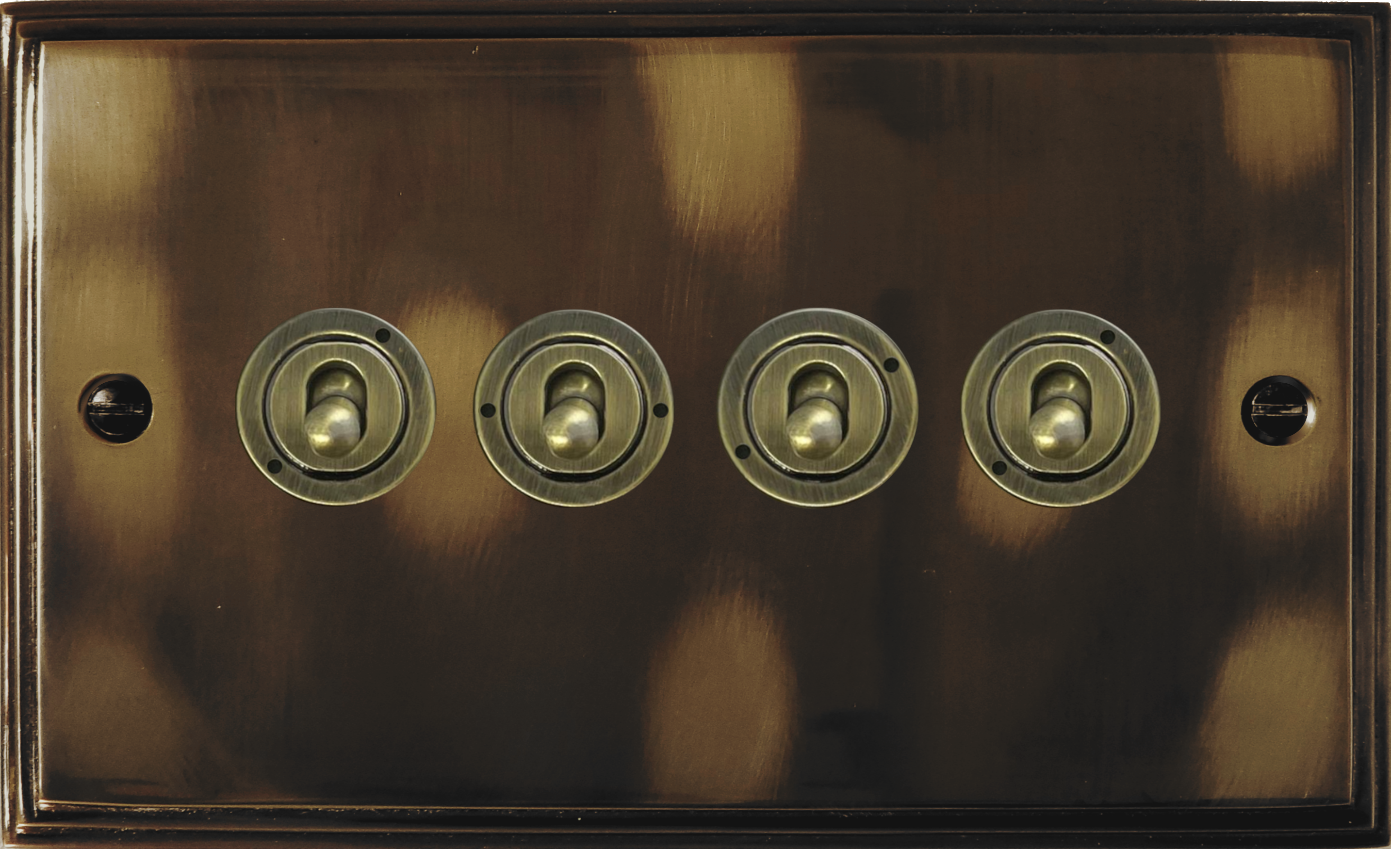 Victorian Cast Aged Brass Toggle Plate (4 Gang/Antique Brass Toggle) VC.384.AN
