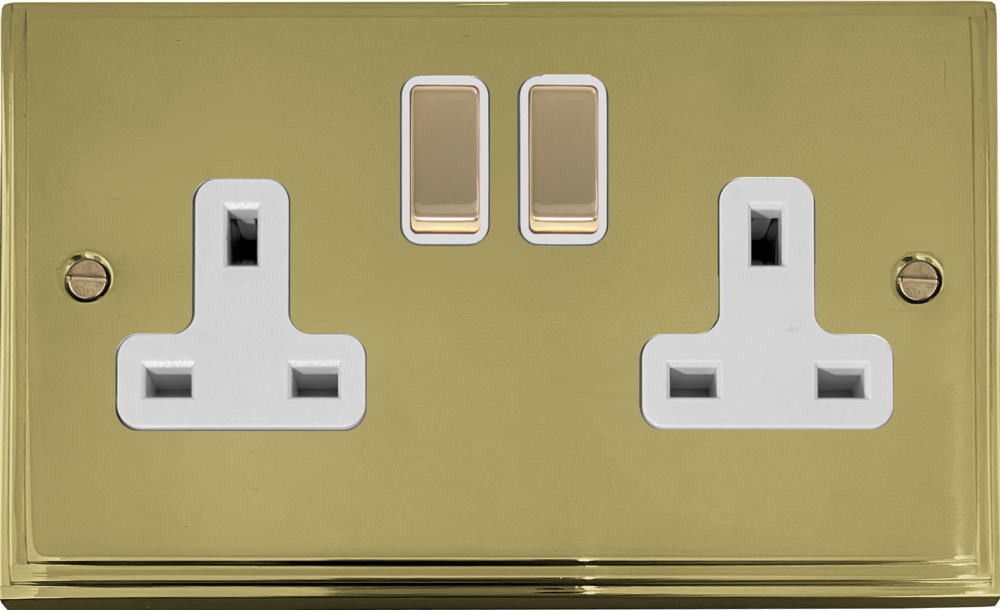 Victorian Cast Polished Brass Double Socket (White Insert) VC.210.B