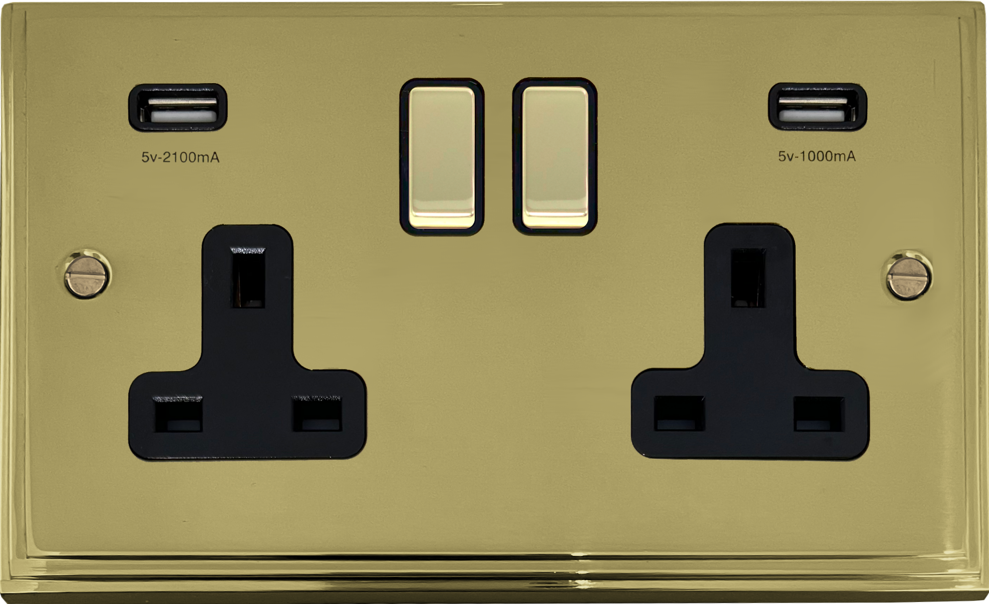 Victorian Cast Polished Brass Double Socket with USB VC.3910.B