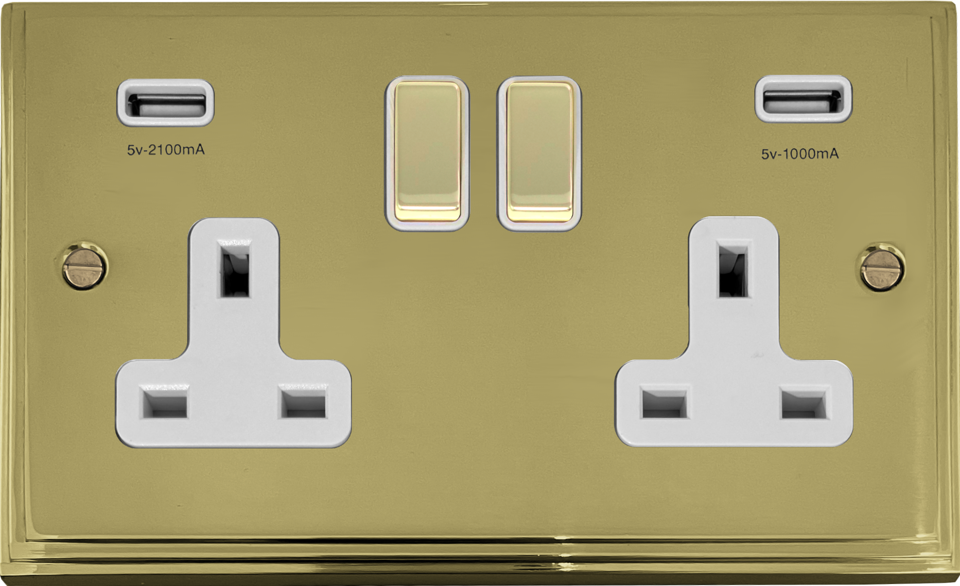 Victorian Cast Polished Brass Double Socket with USB (White Insert) VC.2910.B