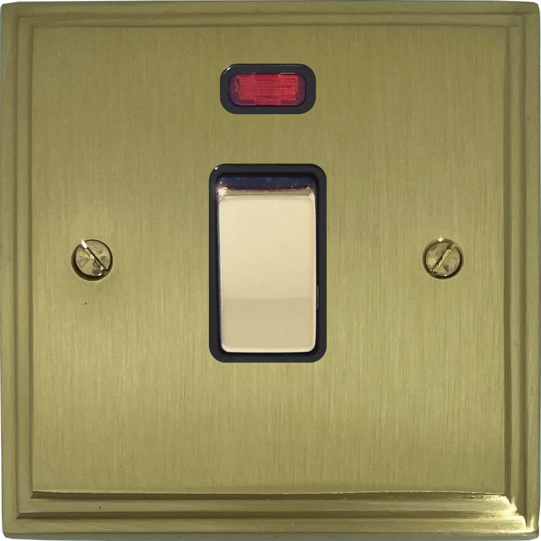 Victorian Cast Satin Brass 20A DP Switch with Neon (Brass Switch/Black Inserts) VC.326.SB