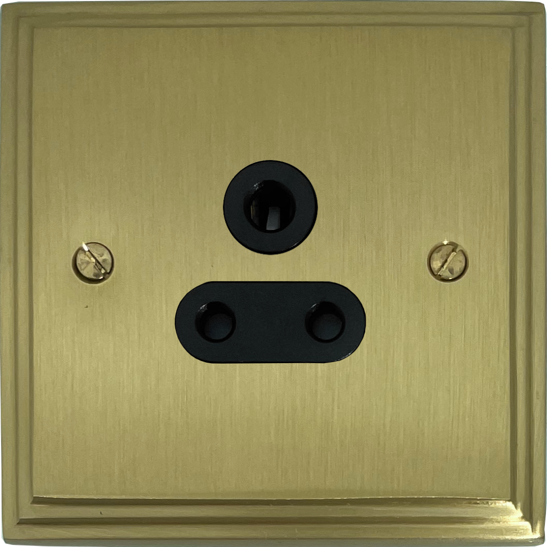 Victorian Cast Satin Brass 5A 3 Pin Socket (Black Insert) VC.59B.SB