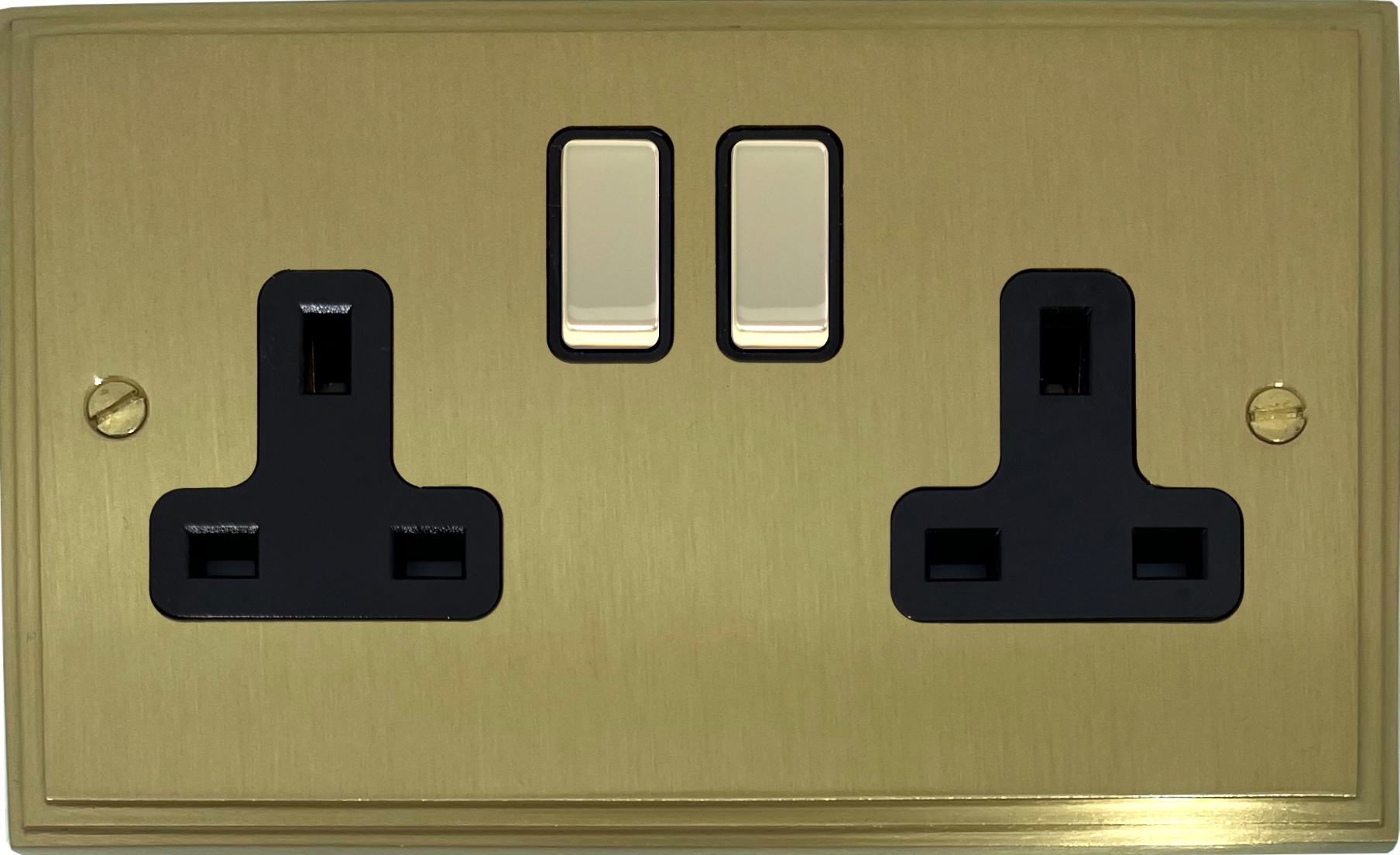 Victorian Cast Satin Brass Double Socket (Brass Switches/Black Inserts) - VSB310