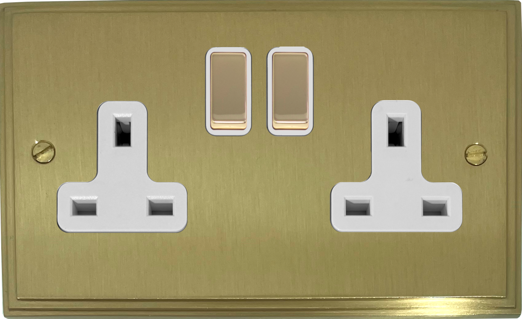 Victorian Cast Satin Brass Double Socket (Brass Switches/White Inserts) VC.210.SB