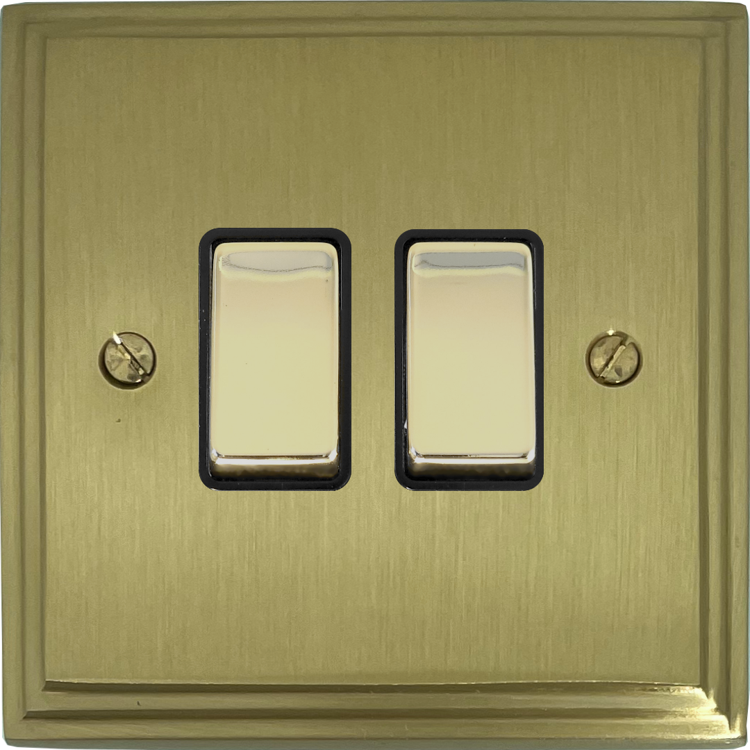Victorian Cast Satin Brass Light Switch (2 Gang/Brass Switches/Black Inserts) VC.302.SB