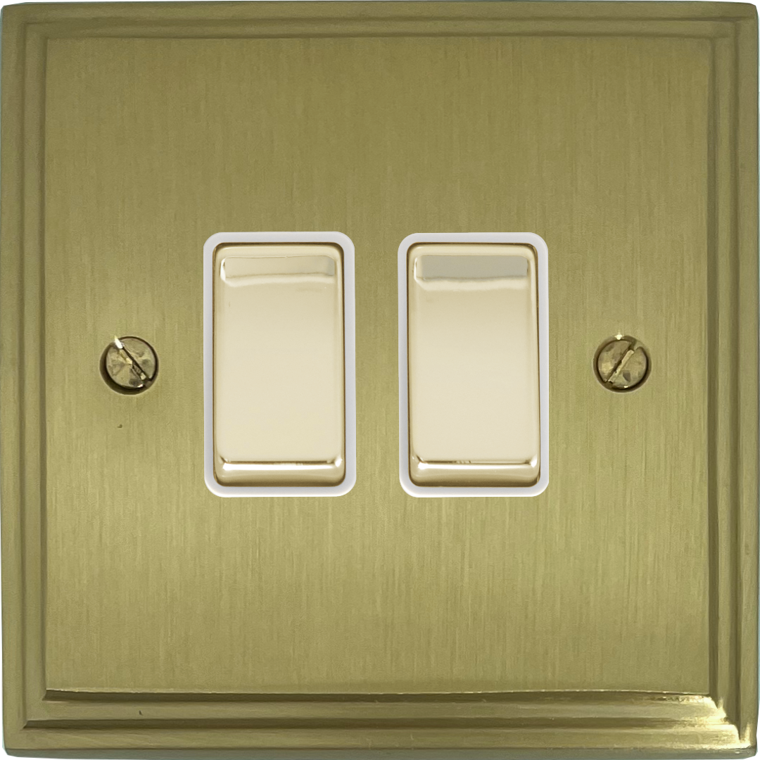 Victorian Cast Satin Brass Light Switch (2 Gang/Brass Switches/White Inserts) VC.202.SB