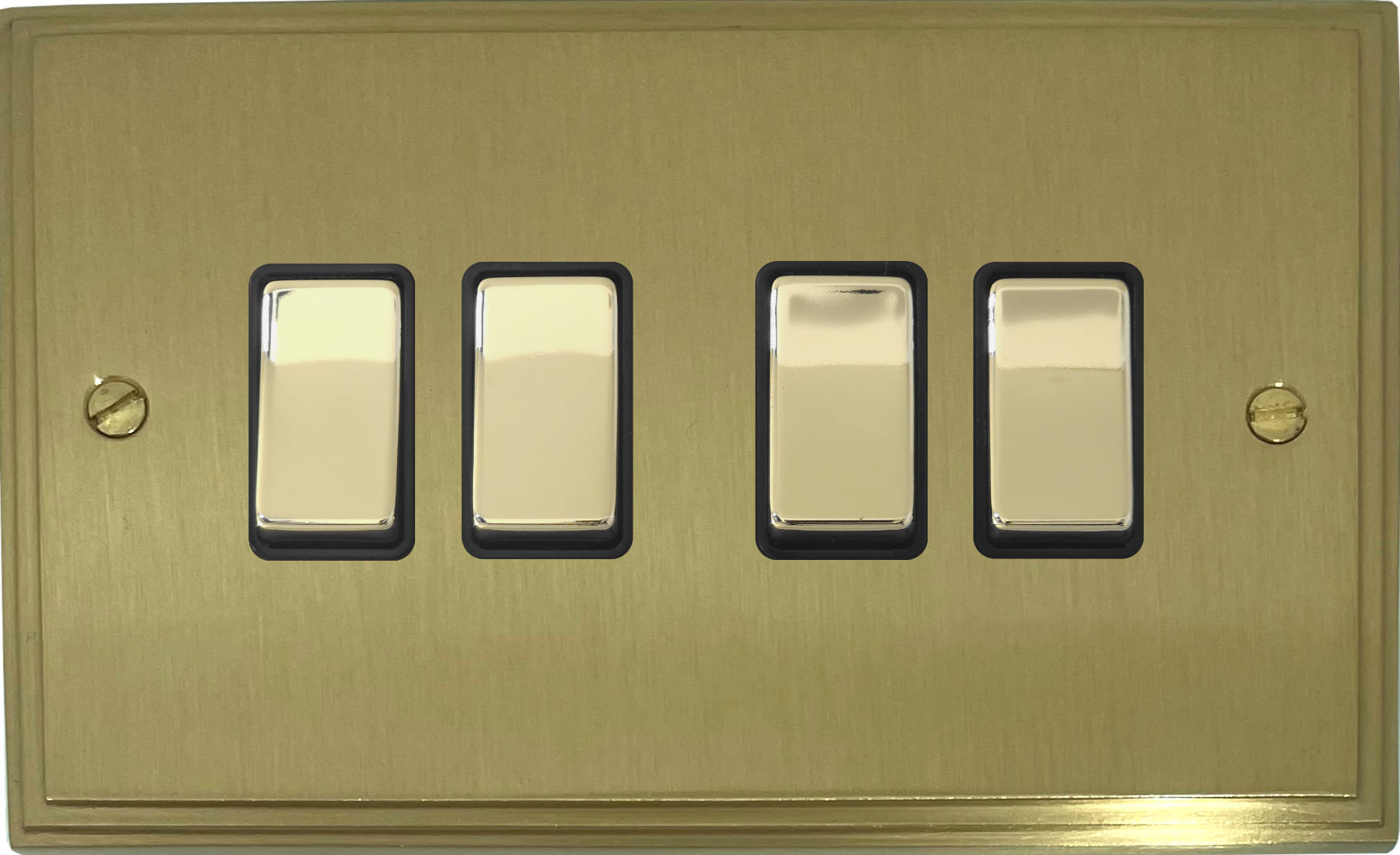 Victorian Cast Satin Brass Light Switch (4 Gang/Brass Switches/Black Inserts) VC.304.SB