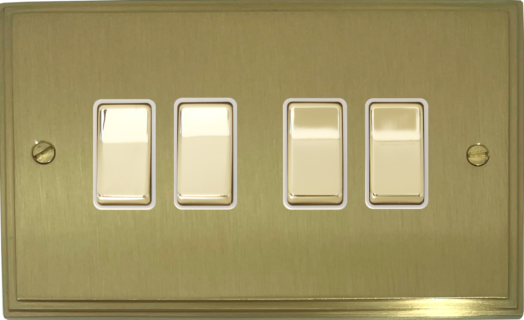 Victorian Cast Satin Brass Light Switch (4 Gang/Brass Switches/White Inserts) VC.204.SB