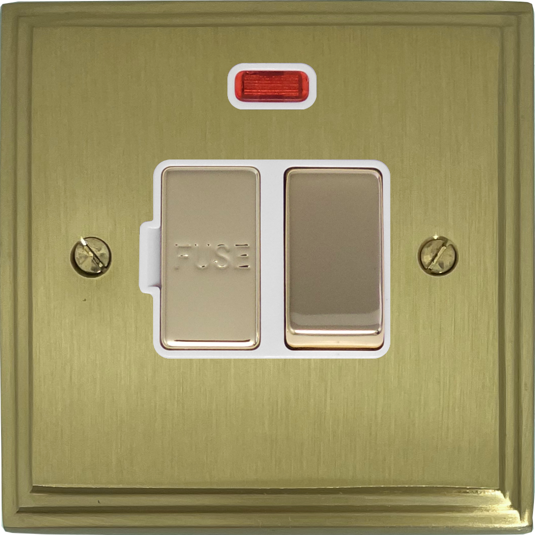 Victorian Cast Satin Brass Switched Fused Spur with Neon (Brass Switch/White Inserts) VC.227.SB
