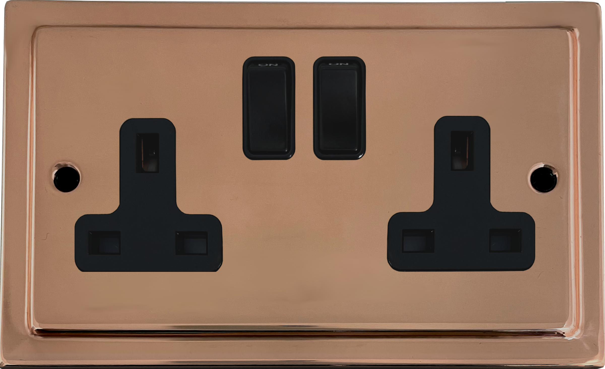 Victorian Copper Double Socket (Black Switch) VI.10B.BC