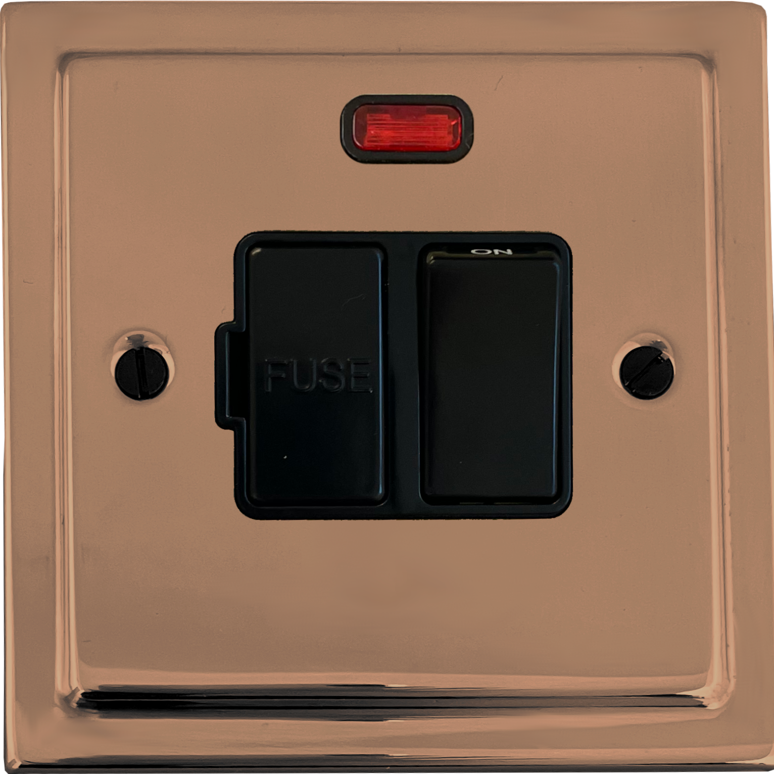 Victorian Copper Switched Fused Spur with Neon (Black Switch) VI.27B.BC