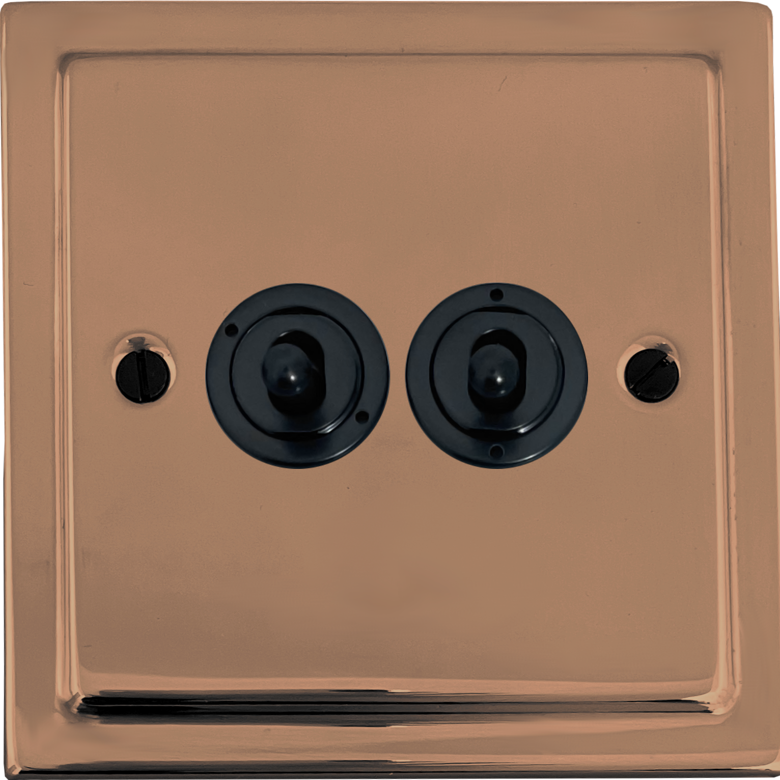 Victorian Copper Toggle Switch (2 Gang/Flat Black Toggle) VI.382FBK.BC